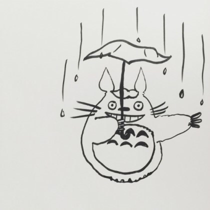 나뭇잎 우산을 쓴 토토로. 붓펜으로 그려봤다.
