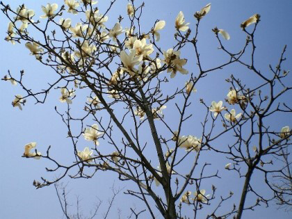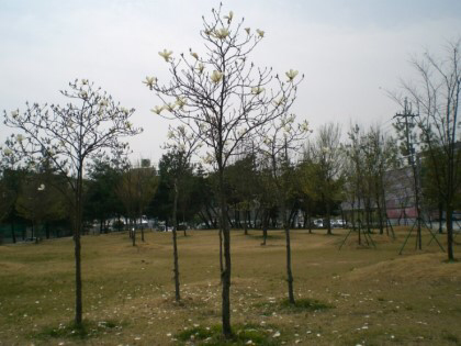 나뭇가지에 하얀 나비가 앉아 있는 것 같았다.