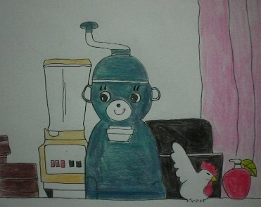 요리가 등장하는 영화이기 때문에 영화 속에는 아기자기한 주방 소품들이 등장한다. 영화에 등장하는 소품을 보고 그린 그림 (왼쪽), 영화에 등장하는 컵