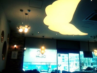 여기는 프랜차이즈 카페인 엔제리너스. 부산 해운대에 자리하고 있었는데 엔제리너스 커피숍의 상징인 천사 날개를 조명으로 활용했다.