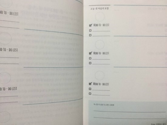 감정을 다스리는 기술도 훈련으로 얻어질 수 있음을 이 다이어리 북을 쓰면서 깨달았다. 감정의 쓰레기통처럼 내 안에 있는 나쁜 감정을 들여다볼 수 있게 해줘서 여기에 기록하는 것만으로도 나를 기분 나쁘게 했던 그 일들이 사실은 그리 크게 화 낼 일이 아님을 느끼게도 됐다. 나쁜 감정을 기록하면서 그 나쁜 감정이 오래지않아 사라지는 것을 경험할 수 있었고 좋은 감정은 그 여운을 더 오래 느낄 수 있었다. 감정을 다스리는 법을 배우고 싶거나 스트레스를 해소하고 싶다면 꾸준히 써 본다면 좋을 것이다.