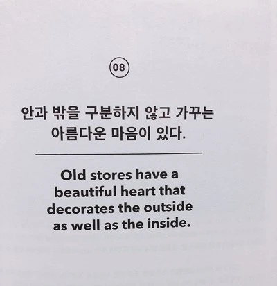 오래된 가게와 간판에 담긴 이야기들은 결국 누군가의 삶에 닿아 있을 수밖에 없었고 그래서 이 책은 오래된 것에 대한 사랑, 지나온 시간에 대한 누군가의 삶에 대한 사랑 이야기로 채워져 뭉클한 감동을 선사한다.