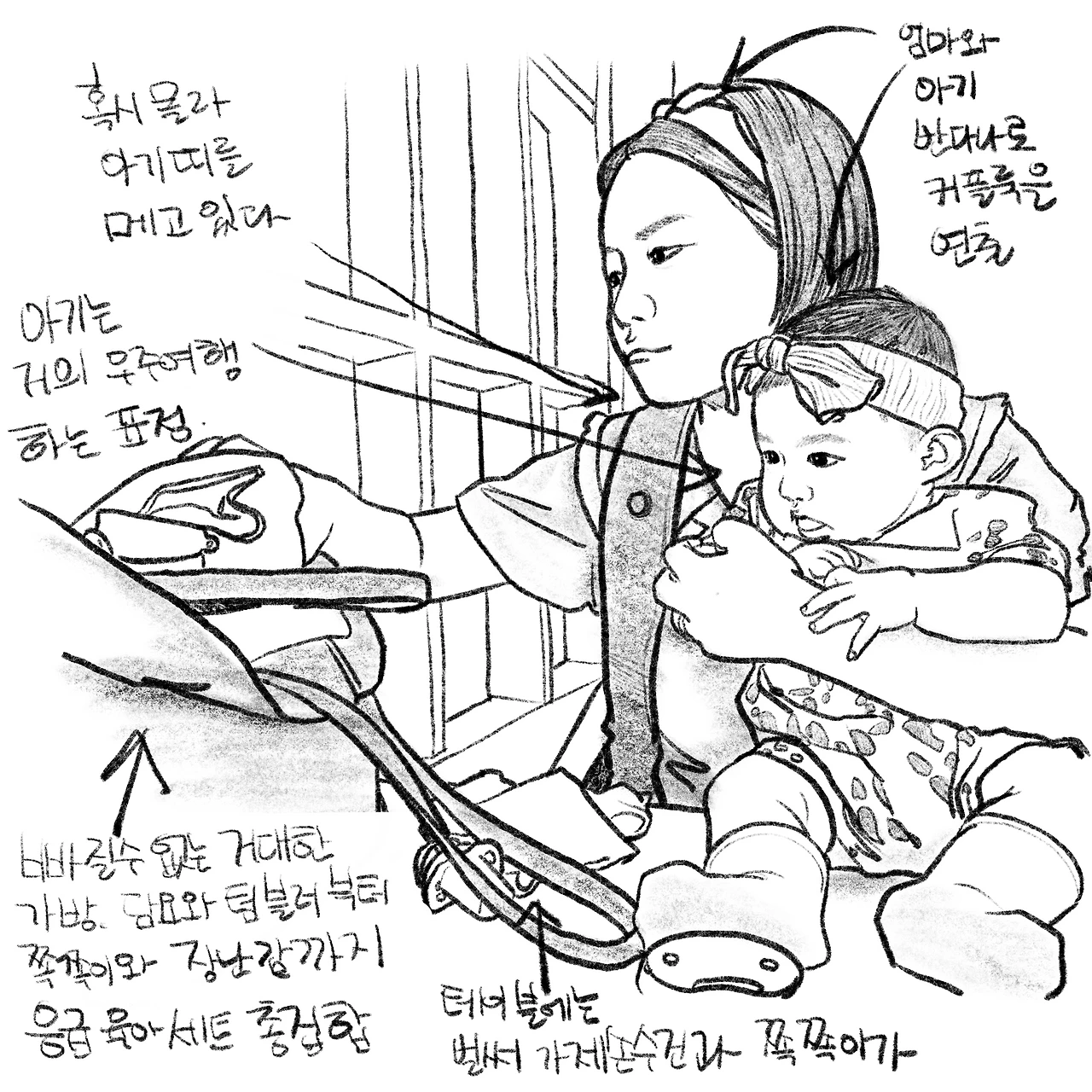 울음을 터뜨리고 말았다. 결국 아기띠를 멘 엄마