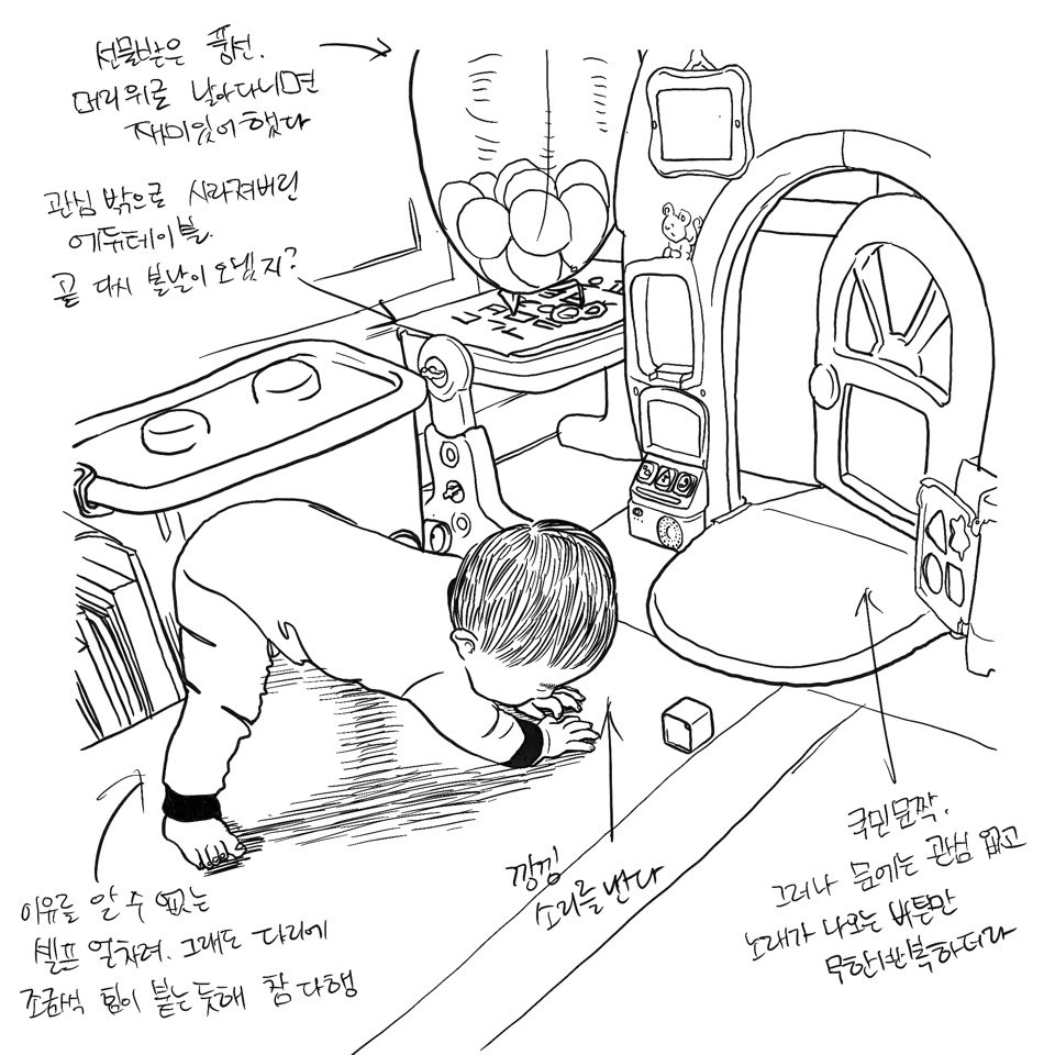 그러나 아기의 웃음, 처음으로 잡고 선 순간, 또렷한 발음으로 엄마를 부른 순간, 거실에 쳐놓은 가드 틈새로 아빠와 눈이 마주쳤을 때 개구쟁이처럼 웃어줬던 순간, 엄마에게 폭 안겨 있던 순간, 아빠 입술을 손가락으로 퉁기면서 세상 즐거운 듯이 웃던 순간, 그 찰나의 순간이 긴 고통을 상쇄한다. 행복한 시간은 짧지만 나머지 고통의 시간을 충분히 지워줄만큼 강렬하고 달콤한 것이다.