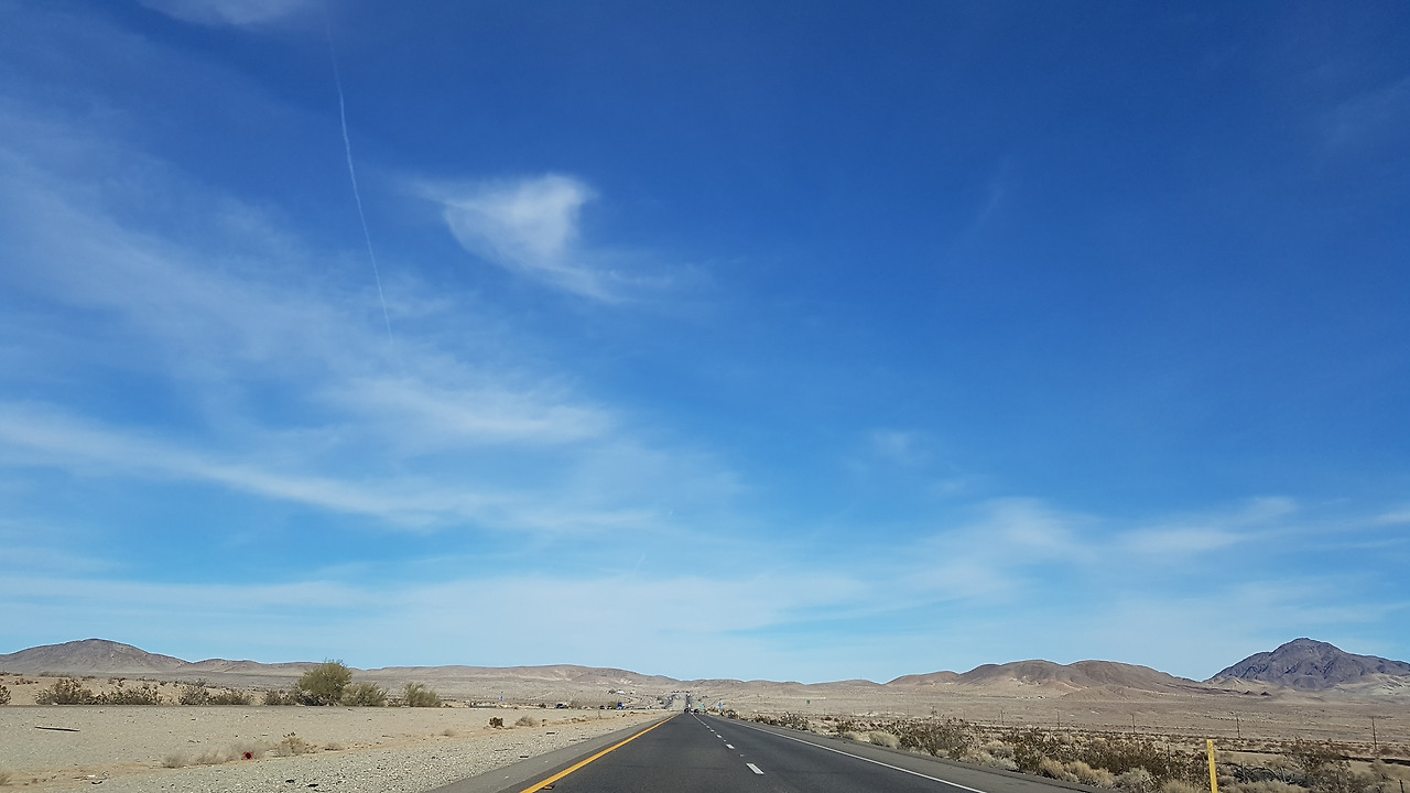 기름이 가득 차서 배부른 자동차에 올라 그렇게 LA를 뒤로 하고 라스베이거스를 향해 달리기 시작했다. 캘리포니아 LA의 거리에 가득했던 야자수와 하늘 높은 곳에서 내리쬐었던 햇빛, 드넓은 도시의 스카이 라인, 여유로운 온도와 공기 등 모든 것이 그리울 것 같았다. 캘리포니아 증후군이 있다면 이런 것이 아닐까 싶었다. 처음에는 외곽으로 나오느라 시간이 지났지만 황량한 산들이 보이기 시작하더니 이윽고 아무것도 없는 들판이 가득 펼쳐지기 시작했다. 들판이라는 단어가 무색하게 사막이라는 표현이 어울릴 곳이었다. 눈이 닿는 어느 곳이든지 그저 땅이었다. 그 땅 위에는 인간이 지은 건물이 단 하나도 없어서 태초 지구가 만들어졌다면 저러한 모습이 아닐까 하는 생각이 드는 풍경이었다. 차창 밖으로 보이는 풍경은 살면서 처음 보는 모습이라 운전하면서도 꿈길을 달리는 듯했다.
