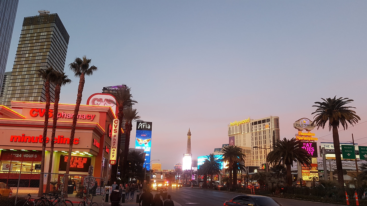 LA에서 차를 몰고 간지 5시간 정도 지나 이제 한낮의 오후가 한풀 꺾일 때쯤 저 멀리 사막 위에 솟아오른 도시가 보이기 시작했다. 라스베이거스였다. 카지노와 호텔이 가득 찬 일명 죄악의 도시(Sin City)라고 불리는 이 곳은 근처에 있는 후버댐 개발로 인해 휴식시설이 있는 도시로 조성되기 시작해서 대재벌이었던 하워드 휴즈가 이곳에 있는 부동산을 매입해 고급스러운 오락, 도박 도시로 탈바꿈하여 지금까지 내려오고 있다. 도박의 도시로서 명성은 세계 최고지만 중국 마카오의 성장세에 밀려 지금은 마카오보다 수익이 적긴 하다. 그래도 라스베이거스하면 자타공인 세계 최고의 유흥 도시인 것은 틀림없다.