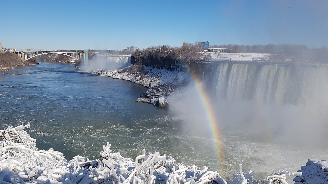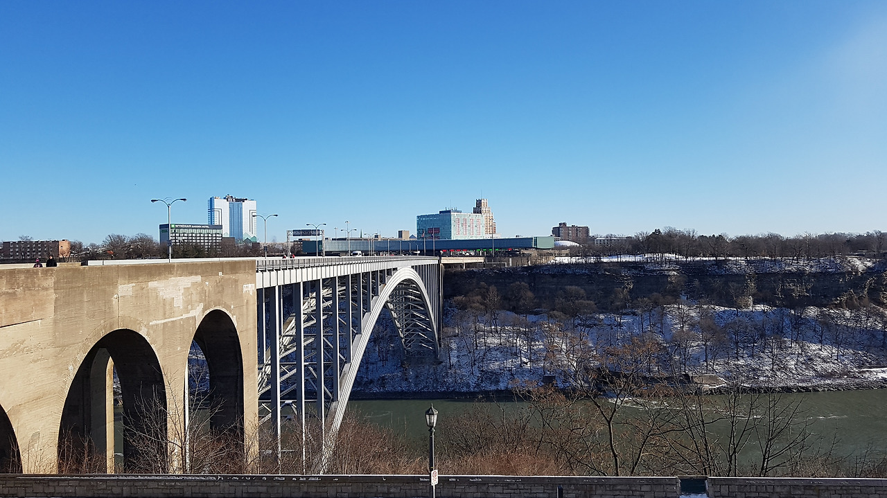 처음에는 메뉴 가격을 보고 조금 망설였지만 미국에서 계속 햄버거 위주로만 먹어 어머니에게 제대로 된 식사를 대접하고 싶다는 생각도 했고 바깥의 추위를 피해 폭포를 감상할 수 있어서 조금 망설인 끝에 들어갔다. 점심 먹기에는 조금 이른 시간이어서 그런가 창가 쪽에도 자리가 많아서 우리는 정말 좋은 뷰가 보이는 곳에서 식사할 수 있었다. 소고기 스테이크, 버거, 치킨 수프, 샐러드, 파스타와 칵테일, 모히토까지 주문해서 분위기를 냈다. 나는 007을 따라 한다고 마티니를 주문해서 마셨다. 다들 느긋하게 식사를 하고 커피, 주스까지 주문해서 마시면서 여유롭게 쏟아지는 폭포를 감상했다. 그러다가 무지개가 떴길래 마침 오후 2시 정도여서 나가서 사진 찍고 폭포를 감상했다. 어머니는 정말 보고 싶어 했던 곳이라 유심히 보셨다. 굉장한 울림을 주는 폭포를 바라보자니 시간 가는 줄 몰랐다. 시계를 보니 3시가 돼가자 서둘러 미국으로 넘어가기 위해 레인보우 브리지를 건넜다. 센트로 넣어 단지 1달러만으로 지하철 개찰구 지나듯이 넘어가는 게 신기하고 신선했다. 그렇게 국경을 넘고 다시 미국에 도착했다.