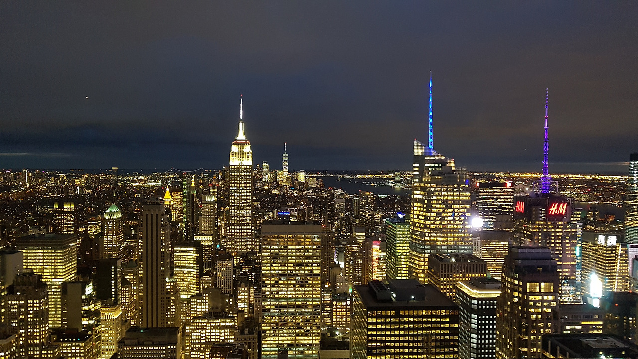 시간이 되자 탑 오브 더 록을 보러 갔다. 언제 모여들었는지 그토록 보이지 않던 한국 사람들이 여기서는 엄청 많았다. 이 시간에 들어가는 사람들 대부분이 한국인으로 보였다. 록펠러 센터 67층에 올라서 옥상으로 올라가니 해가 진 직후 뉴욕의 야경이 아름답게 펼쳐졌다. 한눈에 오래 담아두고 싶은 풍경이었다. 나는 어머니, 아내, 아이를 뉴욕 야경에 세우고 사진을 찍어주었다. 특히 뉴욕의 상징 중 하나인 엠파이어 스테이트 빌딩에서 반짝거리는 불빛은 사진의 품격을 올려주었다. 내가 좋아하는 영화인 '시애틀의 잠 못 이루는 밤에'도 등장하는 빌딩으로 뉴욕 배경의 대중문화에 항상 등장하는 단골손님이다. 그 근처에는 우아한 모습이 인상적인 크라이슬러 빌딩도 보였다. 세계에서 가장 높은 빌딩을 가지고 싶었던 크라이슬러의 욕망이 빚어낸 이 우아한 곡선미를 자랑하는 건축물도 아름답게 빛내고 있었다. 그렇게 감상을 하면서 혼자 사진을 찍다가 가족을 만났는데 아이가 화장실 변기에 아까 샀던 미니로봇을 빠뜨려서 펑펑 울었다고 했다. 우리와의 인연이 길지 않은 장난감이었다. 장난감 로봇은 한국에서 사기로 하고 마음을 접었다. 한참을 사진으로, 영상으로 이 뉴욕의 야경을 기록했다.