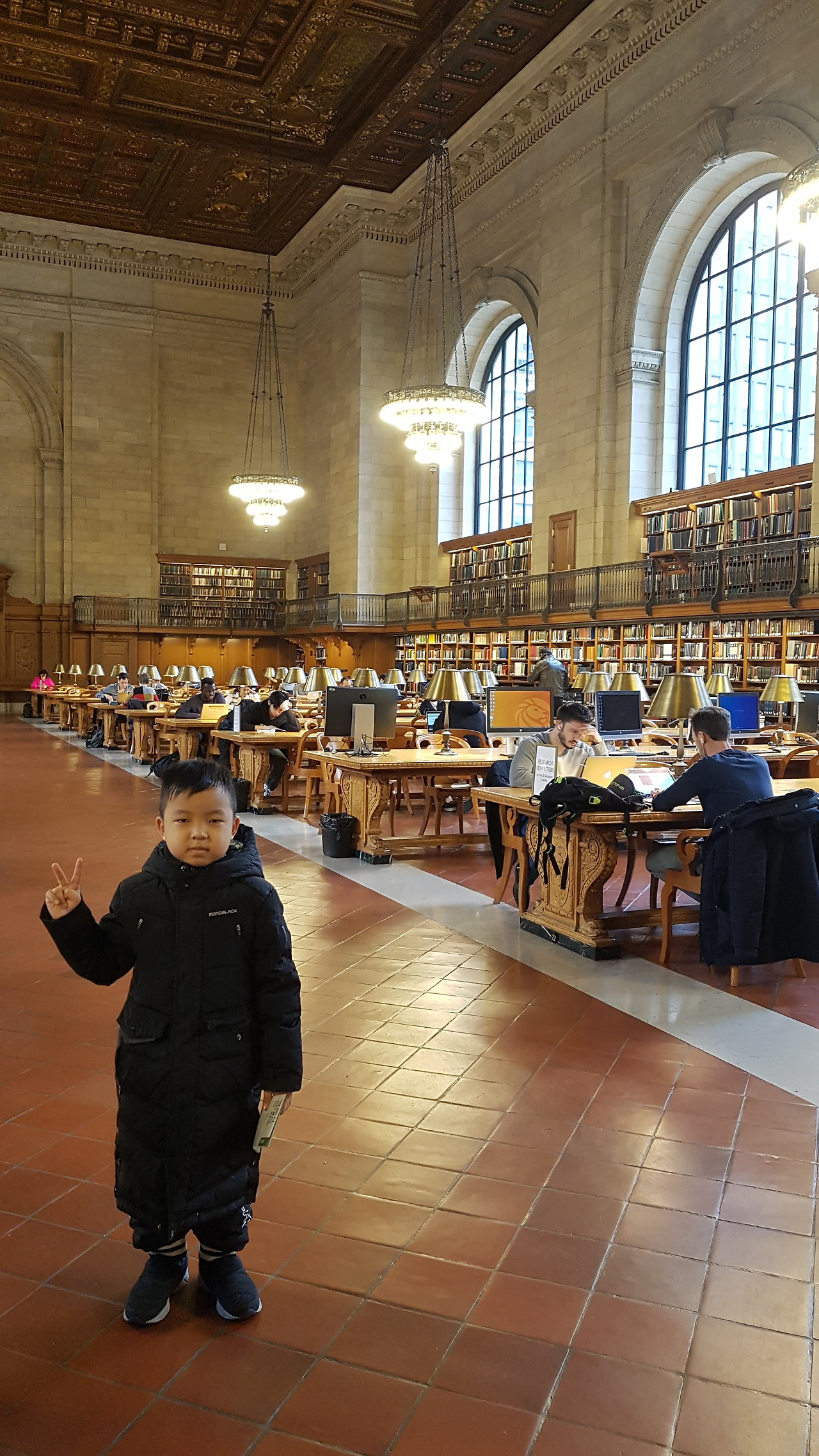 한가롭게 스케이트를 타는 사람들이 있었던 브라이언트 공원을 지나 뉴욕 공립도서관에 갔다. 거대한 대리석으로 지어진 건물은 3,800만 점이 넘는 도서와 소장품들이 보관되고 있는 세계에서 손꼽히는 도서관으로 내부는 미술관처럼 고풍스러운 장식과 그림들이 가득했다. 공공도서관이 아니라 미술관이나 궁전 같았다. 아이는 팸플릿에 있는 동물 찾기에 열중해서 소, 벌, 사자, 괴물까지 다 찾아다녔다. 나와 아내는 호젓하게 책을 읽고 있는 사람들 틈바구니 속에서 책을 꺼내 들고 잠시나마 이 분위기를 느껴보았다. 명성이 있는 도서관이라 그런지 관광객들이 제법 방문하는 듯했다.