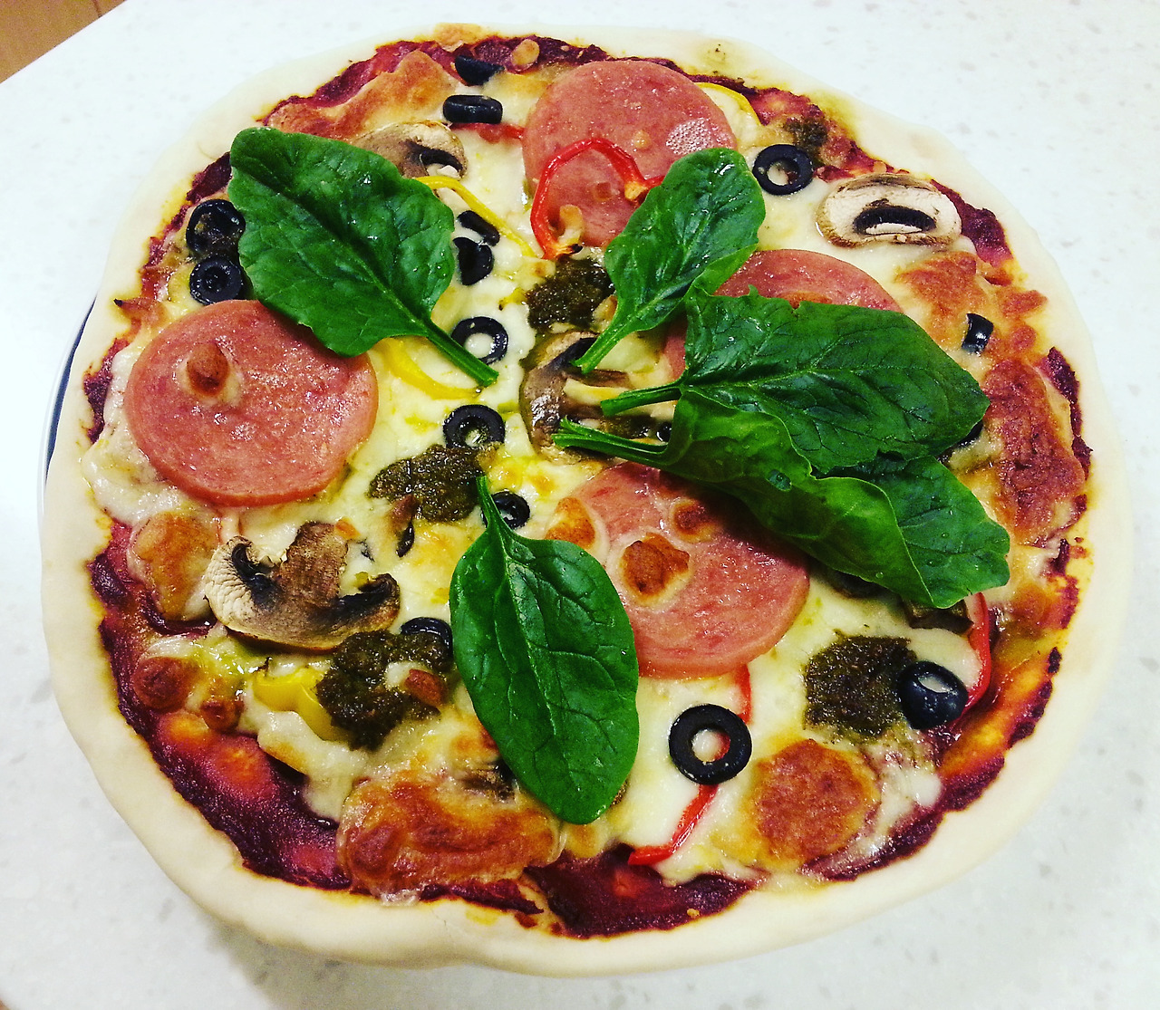 (재료) 밀가루, 이스트, 소금, 올리브 오일, 생 토마토, 마늘, 토마토 페이스트, 치즈, 토핑 재료