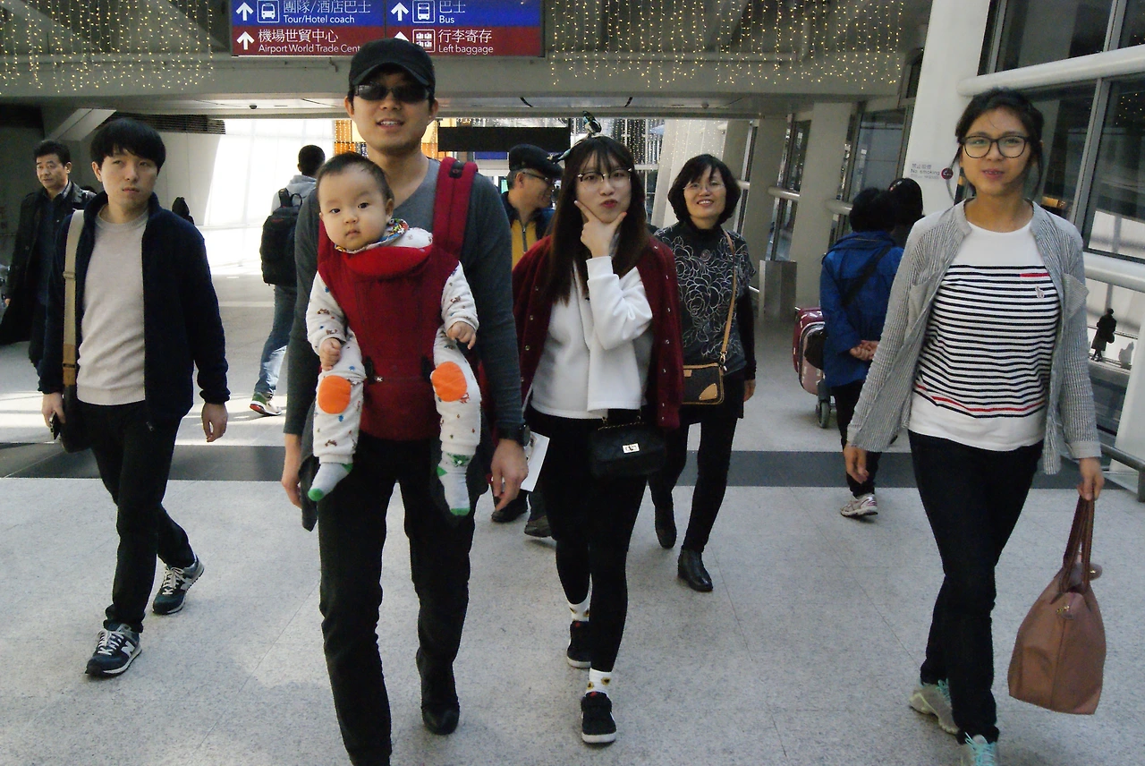 인천 국제공항에서 아내와 아이아직 아침 해가 뜨기도 전인 새벽 6시가 안되어 공항에 도착해서 먼저 도착 지점인 픽업 장소에 내려준 다음음 드넓은 야외 주차장을 찾아 주차를 하고 공항 안으로 들어갔다. 서울에서 버스를 타고 온 동생들과 오랜만에 만나서 출국 수속을 했다. 곤히 자고 있는 아이를 안고 있어서 일단 여권을 제시하고 아이 얼굴을 보였다. 수속 직원이 슬쩍 보더니 이내 여권을 돌려주었다. 이렇게 아이의 공항 입성 첫 관문을 무사히 통과했다. 출국 수속을 마치고 나오니 화려한 조명이 가득한 면세점들이 늘어선 거리 안으로 들어갔다. 항공기 기내식이 없기도 하고 아침 식사 시간이 되어 다들 출출해 공항 안에서 아침 식사를 하기로 했다. 아이도 낯설어하면서 울거나 하지 않고 가족이 같이 있으니 기분이 좋아 보이면서 칭얼거림도 없이 잘 있었다. 밖에 다닐 때는 항상 내가 안고 다니기 때문에 나와 꼭 붙어 있었지만 식사하거나 쉴 때에는 아내나 어른들이 돌아가면서 봐주니 마음이 한결 편했다. 다 같이 모여서 첫 해외여행을 대가족으로 떠나게 되니 기분이 뭔가 뭉클하면서 좋은 여행으로 남았으면 하는 바람을 했다. 특히 어머니께서는 평소에 친하게 지내는 막내 외삼촌 가족과 함께 떠나는 첫 여행이라서 그런지 기분이 많이 좋아 보였다. 그리고 화창한 아침의 기운을 받으며 9시 20분에 홍콩 쳅락콕 공항으로 가는 비행기에 몸을 실었다.