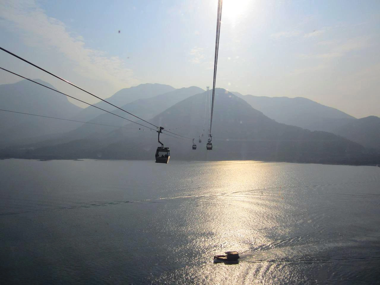 옹핑 360 케이블카는 30분 가까이 타는 코스여서 생각보다 길었다. 중간에 산이 나와서 이제 끝이겠구나 싶으면 다시 나오고 또 산이 나와서 끝이겠구나 싶으면 다시 나와서 길었는데 평소 약간의 고소공포증이 있던 외숙모는 밑에 쳐다보는 것을 무서워하셨다. 케이블카는 바닥이 안 보이는 스탠더드와 투명해서 보이는 크리스털이 있었는데 우리가 선택한 것은 크리스털로 케이블카 밑으로 바다가 다 보였기 때문이다. 우린 그런 외숙모를 많이 놀렸다. 케이블카를 타고 포린사의 유명한 부처인 청동 좌불상과 함께 유유히 뻗어있는 바다와 하늘을 감상하고 난 뒤 케이블카에서 내렸다. 포린사는 홍콩에서 손꼽히는 불교 사원으로 천단대불(天壇大佛)이라고 불리는 청동 좌불상이 매우 유명하다. 1993년에 만들어진 천단대불의 높이는 34m, 무게는 200톤 정도 나간다고 하니 과연 케이블카 안에서 봐도 그 모습이 거대해서 장엄한 느낌이 들었다. 도도한 부천님의 눈과 손길에 홍콩의 평화가 기원되는 듯한 느낌이었다. 종착지인 퉁청(東涌) 역에서다시 30분 정도 2층으로 된 S1버스를 타고 공항으로 왔다. 공항에 와서는 숙소로 가는 공항 고속철도 티켓을 끊었다. 그리고 노을을 바라보며 홍콩의 중심가에 위치한 카우룽(九龍) 역(Kowloon Station)에서 내렸다.