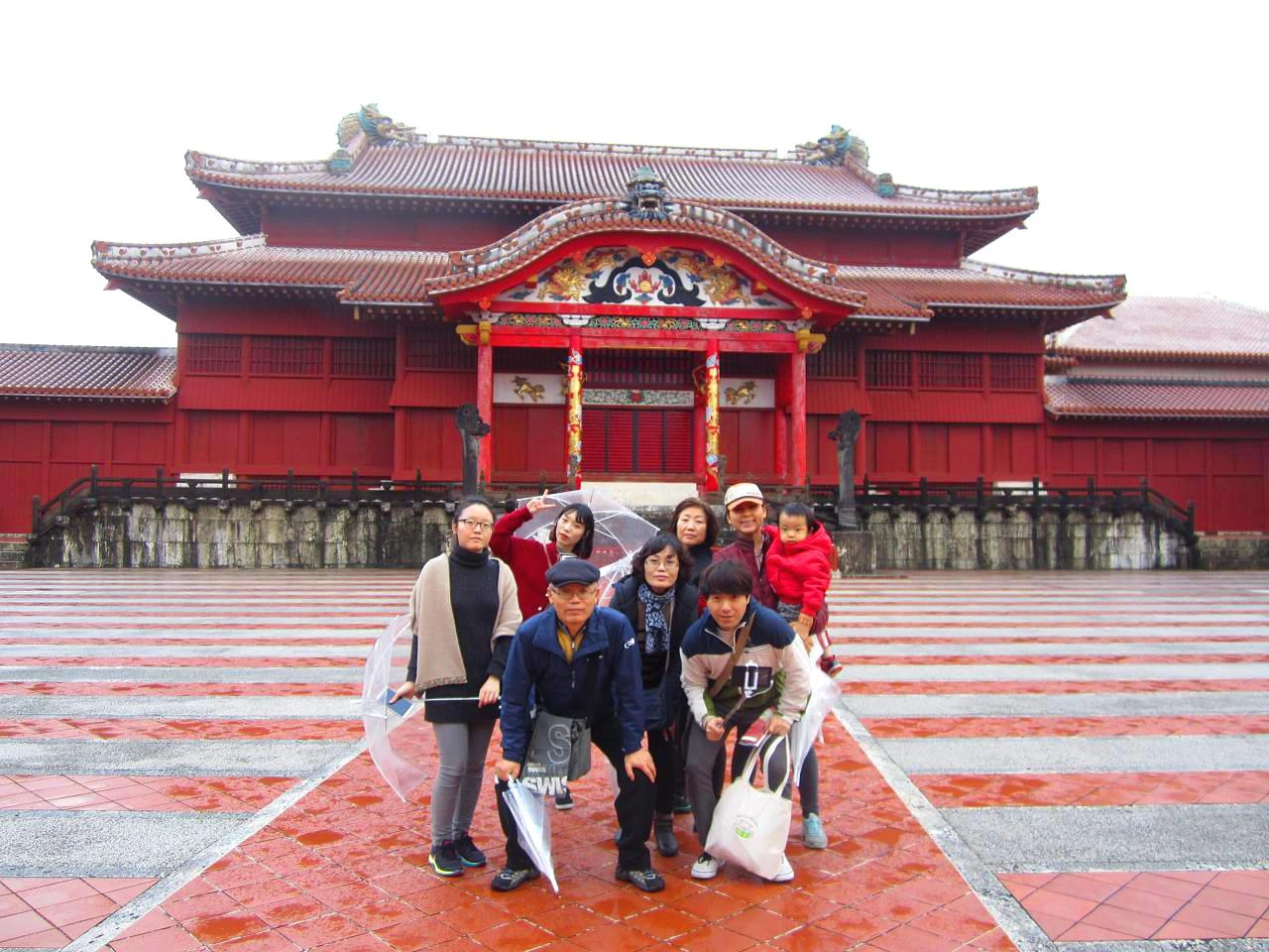 전철을 타고 가기 전에 다들 약간의 허기를 느껴서 편의점에 들러 어묵과 샌드위치를 간식으로 먹었다. 아시아바시 역에서 오르막길을 오르는 전철을 타고 슈리 역에서 하차했다. 그리고 택시를 2대로 나눠 타고 슈리성 정문인 슈레이몬(守礼門)에 하차했다. 상당히 옛 건물로 보이지만 사실 이 건물 역시 제 2차 세계 대전 당시 파괴되어서 1958년에 복원한 건물이다. 정문에서 시작한 우리의 답사 코스는 소노향우타키 석문에서 제 1성문인 칸카이몬(歓会門), 슈리성 내부 세이덴(正殿), 보초들이 자리 잡고 있던 반쇼(番所)까지 이루어졌고, 타마우둔(玉陵)과 킨죠우쵸 이시다다미 길까지 2시간 가까이 구경했다. 명나라의 영향을 받은 이 건축물은 우리의 경복궁과 상당히 닮았는데 이 슈리성이 정확히 언제 건설되었는지는 정확한 연도는 모르지만 대개 14세기 정도에 지어졌을 거라고 짐작한다. 류큐왕국의 전통 복장을 입은 안내원과 대화도 하면서 사진도 찍으면서 즐겁게 관람을 마치고 저녁은 근처 가정식을 파는 식당으로 갔다. 슈리성 관람할 때까지 비가 내리다가 식당으로 갈 때에는 다행히 비가 그쳤다.