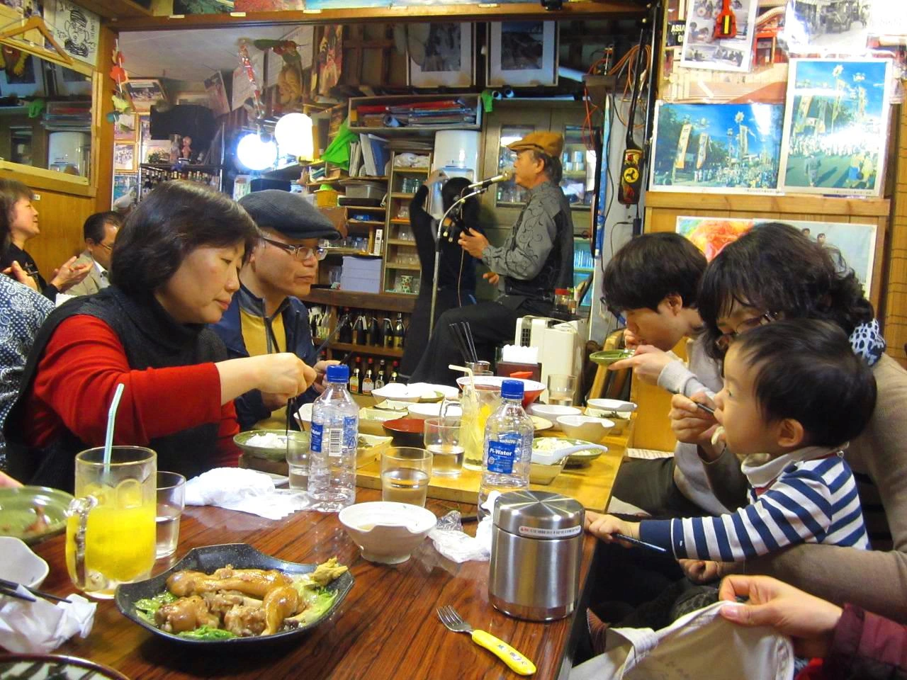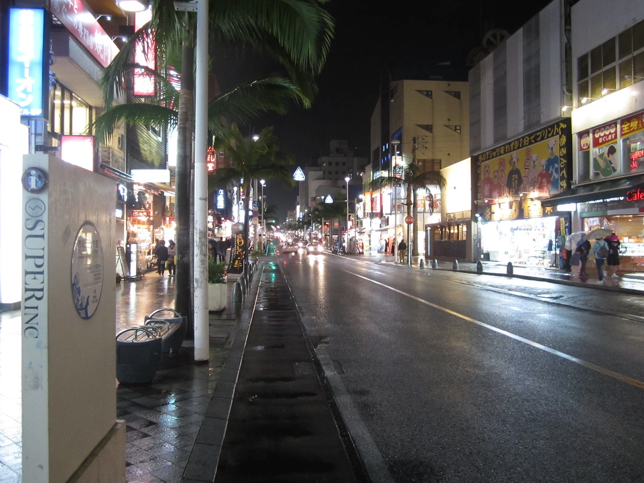 현지인들이 많이 가는 식당으로 가게는 그리 크지 않았지만 오키나와의 특색 있는 음식들을 여러 가지 맛볼 수 있었다. 오키나와 소바(沖縄そば), 고야 참프루(ゴーヤーチャンプルー), 동파육과 비슷한 라후테(ラフテー), 일본 유학 당시 자주 먹었던 돈지루(豚汁), 해초이지만 바다에서 나는 포도라는 뜻의 우미부도(海ぶどう), 각종 해초로 만든 나물 등 다양하게 주문해서 먹었다. 물론 오리온 맥주도 주문해서 다들 한 잔씩 했다. 아이가 있어서 다다미 좌식에서 함께 먹었는데 좁은 가게 안에서 전통 악기를 연주하는 주인아저씨의 연주에 사람들은 분위기에 맞춰 신명 난 가락을 즐겼다. 아이도 편안하게 앉아서 오키나와 음식을 즐겼다. 작은 로컬 식당의 매력을 흠뻑 느낄 수 있는 시간이어서 너무 좋았다. 가게에서 나와서 근처 국제 거리(国際通り)를 거닐면서 첫날밤을 마무리했다. 겐초마에 역과 마키시 역 사이에 위치한 국제 거리는 나하시는 물론 오키나와 현에서 손꼽히는 번화가로 그렇게 규모는 크지 않지만 제 2차 세계 대전 이후 재건된 오키나와의 중심지로 국제 거리의 이름은 '어니 파일 국제 극장'에서 따왔다. 이러한 발전을 두고 국제 거리는 기적의 1마일이라고 불리기도 한다. 이곳에는 오키나와 최대 토산품 과자가게인 오카시고텐(御菓子御殿)이 있어서 여기에서 자색 고구마 타르트를 사서 맛보았다.