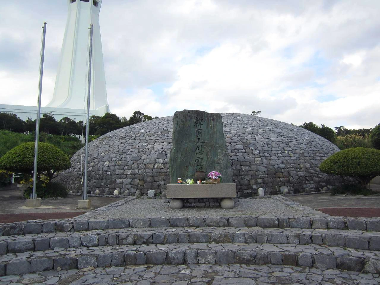 그리고 한국인 위령비가 있는 오키나와 평화기념공원에 갔다. 오키나와 전투는 앞서 말했듯이 일본 영토 안에서 가장 치열하게 지상전이 벌어진 곳이기 때문에 그 희생자가 엄청났다. 일본군도 많이 죽었지만 오키나와 주민들도 많이 희생되었으며 더군다나 이곳에 강제로 끌려온 조선인 희생자도 많이 있었다. 그분들을 기리기 위해서 우리는 찾았다. 드넓은 바다가 보이는 곳에는 제 2차 세계 대전 당시 희생되었던 많은 분들의 이름이 적혀 있는 비석들이 있었고, 한국인 위령비는 엄숙한 느낌마저 주었다. 오키나와 남부 마부니(摩文仁)에 조성된 공원에는 검은색 대리석으로 많은 이름들이 새겨있었고 바로 옆에는 한국인 위령비가 있었다. 평화의 초석이라고 불리는 부채꼴 모양의 비석들에는 총 24만여 명의 이름이 새겨져 있다고 한다. 위령비는 무덤이면서 제단 같은 모양새였는데 당시 오키나와 전투에 투입된 조선인은 만 명이 넘는다고 전해졌지만 현재 확인된 것은 313명으로 고국으로 가지 못한 한이 서려있는 듯했다. 위령비의 돌은 우리나라 전국에서 가져온 돌로 만들었다고 한다. 상당히 드넓은 공원 주변을 산책하면서 이 땅에 사는 모든 이들에게 다시는 이러한 일을 겪지 않기를 기도했다.