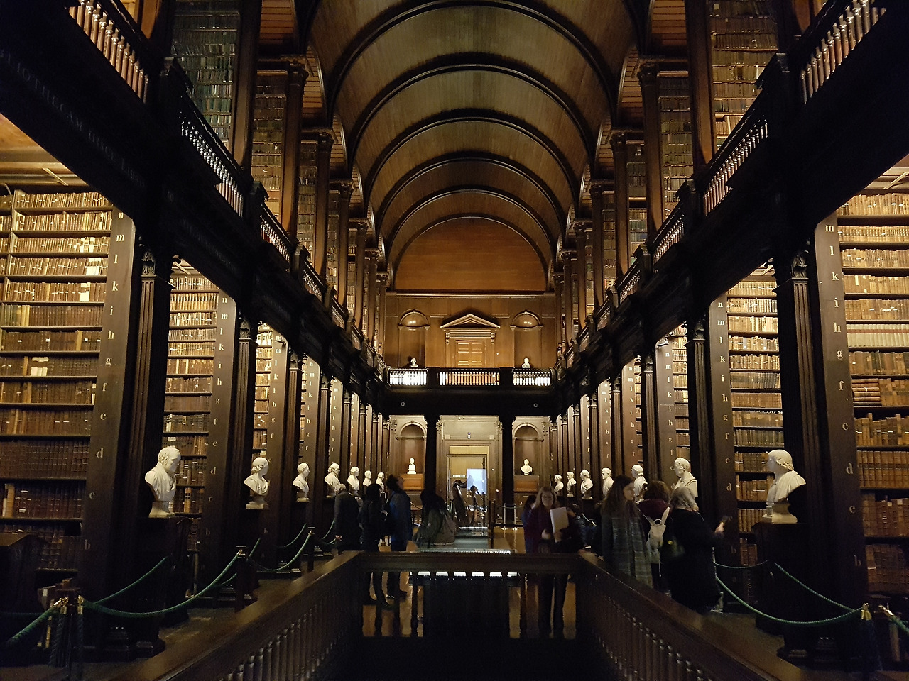 시내를 지나니 금방 대학에 도착해서 바로 도서관으로 들어갔다. 캐리어를 가지고 다녔기에 입구에 잠시 맡기고 들어갔다. 트리니티 대학은 아일랜드에서 가장 오래된 대학으로 1592년 엘리자베스 1세가 더블린에 기증한 대학이라고 한다. 그러기에 도서관 이외에도 굉장히 유서 깊은 건물들이 많았다. 이 대학 출신자로는 문학가들이 많은데 조너선 스위프트, 윌리엄 예이츠 등이 있다. 영화 스타워즈의 제다이 사원 도서관의 모티브가 되었다고 하는데 사진으로 봤을 때보다 크게 느껴지지 않았지만 고풍스러움과 오랜 역사가 있음이 한눈에 보였다. 북 오브 켈스는 9세기 초 스코틀랜드의 수도승들이 복음 전달을 위해 만든 성서 필사본인데 이것이 보관된 도서관 일명 롱 룸(The Long Room)은 1732년부터 1751년에 걸쳐 건설된 도서관이라고 한다. 컴컴한 실내를 비추는 작은 조명 불 빛에 의지해 장엄한 도서관을 계속 바라보았다. 이 많은 책들 중에 내가 읽을 수 있는 책은 아마 없을 테지만 지식을 탐구하고 축적해 온 이 곳에 대한 존경심만은 사라지지 않았다.