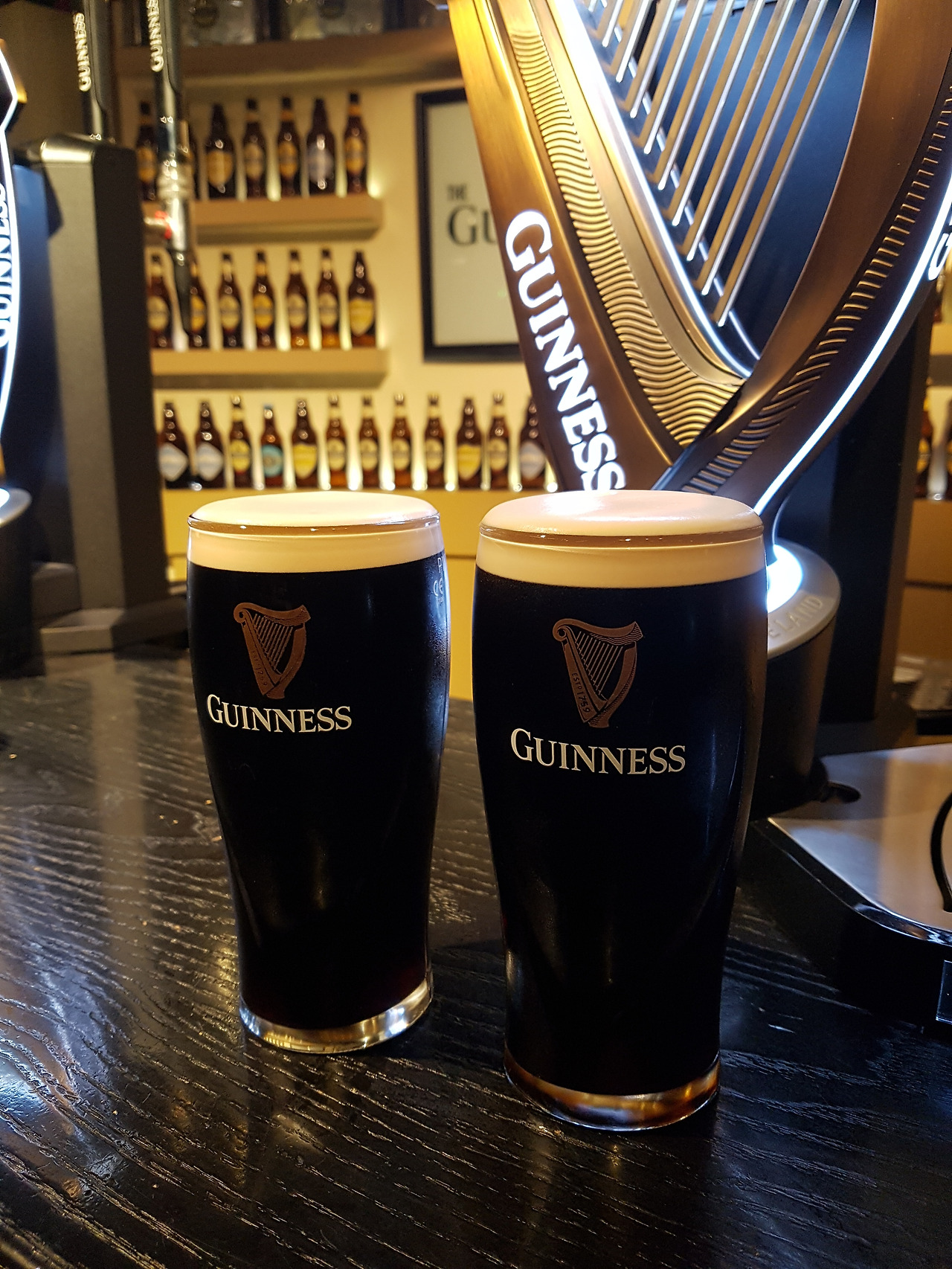 도서관을 나와 시간을 보니 다소 시간이 남아서 근처 기네스 스토어에 가자는 아내의 제안에 따라 택시를 바로 잡아서 갔다. 작은 동네라서 금방 도착하고 입장할 수 있었다. 아무래도 겨울철이다 보니 관광객이 많지 않아 어딜 가도 그렇게 붐비지 않고 바로 입장이 가능한 것이 비성수기 여행의 매력이다. 기네스 양조장 스토어는 성인 둘이 5만 원 정도 하는 입장료를 내야 했지만 세계적으로 유명한 흑맥주이면서 기네스북을 만드는 그 기네스를 방문할 수 있는 시간이기에 아깝지 않았다. 기네스는 흑맥주의 대명사로 알려져 있는데 만든 사람이 아서 기네스라서 그 이름을 딴 맥주 회사이자 브랜드이다. 들어가니 기네스 맥주에 대한 설명, 보리가 맥주가 되는 과정을 잘 설명해 놓았고 직접 전문가가 내려서 시음해볼 수 있게 했다. 그리고 우리들이 직접 기네스 맥주를 내려볼 수도 있었다. 그리고 맥주를 내리면 인증서도 하나씩 만들어 주었다. 자신이 내린 맥주는 마시면서 즐길 수 있었는데 맨 윗 층 바에 가서 즐기려고 했더니 앉을자리도 없고 음악이 시끄럽게 나오고 있어 아이가 힘들 것 같아 내려와 앉을 수 있는 곳을 찾아 잠시 휴식을 즐겼다. 가방에는 어떻게 있었는지 작은 과자도 하나 있어서 까먹으며 갓 짜낸 흑맥주를 맛보았다. 맥주를 마시는데 아이가 계속 자신도 마시고 싶다고 응석을 부려 살짝 입에만 대보게 했는데 바로 뱉으면서 이걸 왜 마시냐고 뭐라고 했다. 숙소까지는 멀지 않아서 걸어가기로 했다. 한 손은 캐리어를 한 손은 아이 손을 잡고 아내와 함께 걸어가는데 우리 둘 다 알딸딸한 취기를 가지고 어두운 더블린 시내를 가로질러 호텔로 들어갔다.