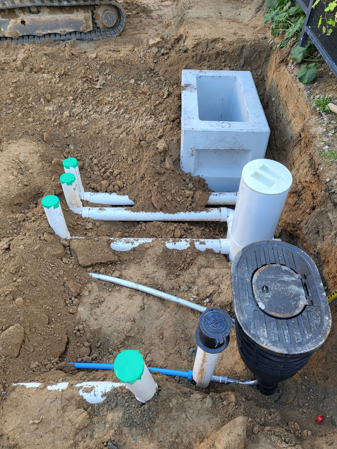 이날 작업은 먼저 터파기라고 해서 깨끗하게 토지 면적을 만들고 땅을 파서 상하수도관과 오폐수관, 통신관을 설치했다. 그리고 잡석을 넣고 땅을 다지고 방수포를 깐 다음 버림 콘크리트 작업을 했다고 했다. 사진으로 낮에 한 작업을 보니 땅을 파고 파이프를 설치하고 다시 덮고 하는 작업이 만만치 않아 보였다. 오전 7시부터 해서 오후 7시까지 했으니 10시간이 넘는 작업을 한 것이다. 본래 이틀에 나뉘어할 작업이지만 장비를 불러서 작업한 김에 야간작업을 추가로 해서 공사 기간을 4일 정도 단축시켰다. 건물이 들어올 자리는 방수포와 버림 콘크리트가 깔렸고, 주차장으로 갈 통로도 버림 콘크리트를 했다. 그리고 마당과 조경을 할 부분은 다듬어 놓기만 했다.