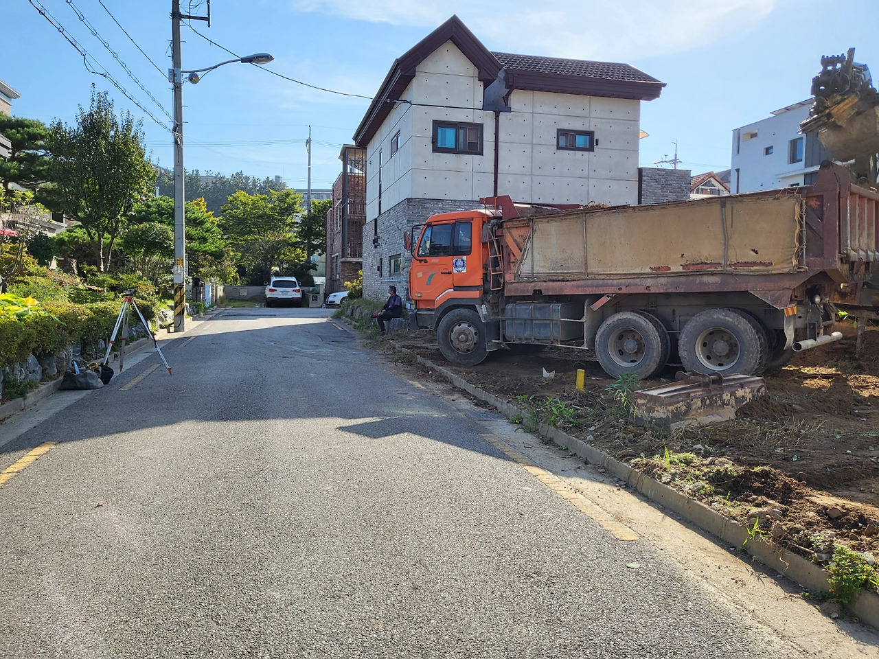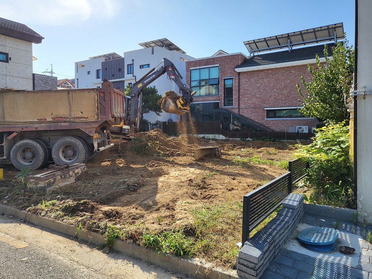 10월 6일 수요일, 드디어 착공이 시작되었다. 이날은 가볼 수가 없어서 설계사와 시공 대표에게도 말씀을 드려 못 가서 아쉽다는 뜻을 전했다. 오전에 여유가 있으면 사진을 보내달라고 하니 깨끗하게 밀려난 땅이 보였다. 월요일에 집 주변 인사하러 다녔을 때만 해도 각종 풀이 무성했는데 반듯하게 정리된 땅을 보니 이제 진짜 시작이구나하는 느낌이 실감 났다. 바삐 하루가 지나고 오후 6시가 다 되는 퇴근길에 설계사에게 전화를 하니 아직도 진행 중이라는 말이 핸드폰 너머에서 들려왔다. 공사 시간이 오전 8시에서 오후 5시 정도 될 거라고 해서 당연히 끝났겠지 생각해서 감사하다는 말을 전하려 전화했는데 앞으로 한 시간 정도는 더 한다고 해서 급히 공사 현장을 방문해보기로 했다.
