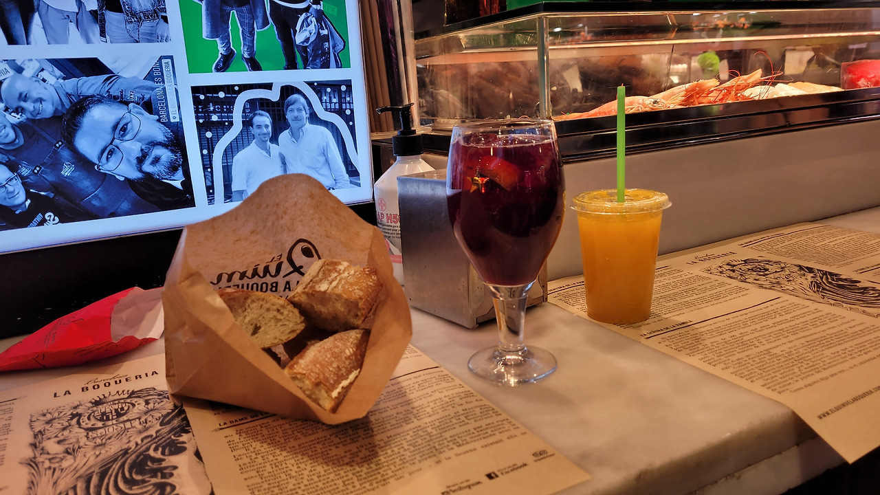 보케리아 시장은 바르셀로나의 전통 시장이고 아직도 수많은 이들이 방문하는 시장으로 싱싱한 해산물, 과자, 과일, 주스, 햄, 고기 등이 즐비했다. 우리의 목표는 분명했는데 바로 하몬을 먹는 것이었다. 하몬은 돼지 뒷다리로 만든 염장 햄인데 그 맛이 일품이라 꼭 먹어봐야 한다고 했다. 우리나라는 돼지 뒷다리가 고급 부위나 선호하는 부위가 아니어서 가격이 저렴하지만 이렇게 수개월 이상 염장해서 만든 하몬이 되면 이야기가 달라진다. 하몬은 크게 세라노 하몬과 이베리코 하몬으로 나뉘는데 세라노는 백돼지, 이베리코는 토종 흑돼지이다. 이베리코도 도토리를 먹인 비율에 따라서 등급이 나뉜다. 우리도 기대가 컸기에 들어와서는 그 가게부터 찾았다. 시장 입구부터 하몬 가게가 있었지만 한 바퀴 둘러보면서 구경을 하고 괜찮아 보이는 가게에서 추천을 받아 두 번째 등급의 슬라이스 되어 있는 이베리코 하몬 1컵을 샀다. 생각보다 시장이 크지는 않아서 둘러보는데 시간이 오래 걸리진 않았다. 아이는 이게 뭐냐, 뭐가 맛있냐는 등 질문을 곧잘 했다. 한 입 먹어보곤 짭짤하고 고소하면서 감칠맛이 도는 게 입맛에 맞았는지 잘 먹었다. 과일 주스도 사 먹고 시장 안에 있는 바에서 달걀과 새우 요리, 상그리아 등을 곁들여 먹고 만족스러운 식사를 즐겼다. 레드와인과 탄산수, 얼음, 레몬과 오렌지 등의 과일을 넣은 상그리아의 취기가 살짝 올라와서 조금 당황스러웠다. 나는 중간에 화장실이 급해서 50센트를 내고 공용 화장실을 이용했다. 아이가 시장에서 나올 때 하몬을 한 번 더 먹고 싶다고 해서 아까 먹은 등급보다 더 높은, 가장 좋은 블랙 라벨 등급을 먹어보기로 했다. 아이는 한 입 먹고는 부드럽다며 살살 녹는다면서 나중에 방학 생활을 이야기할 때 꼭 말하고 싶다고 했다.