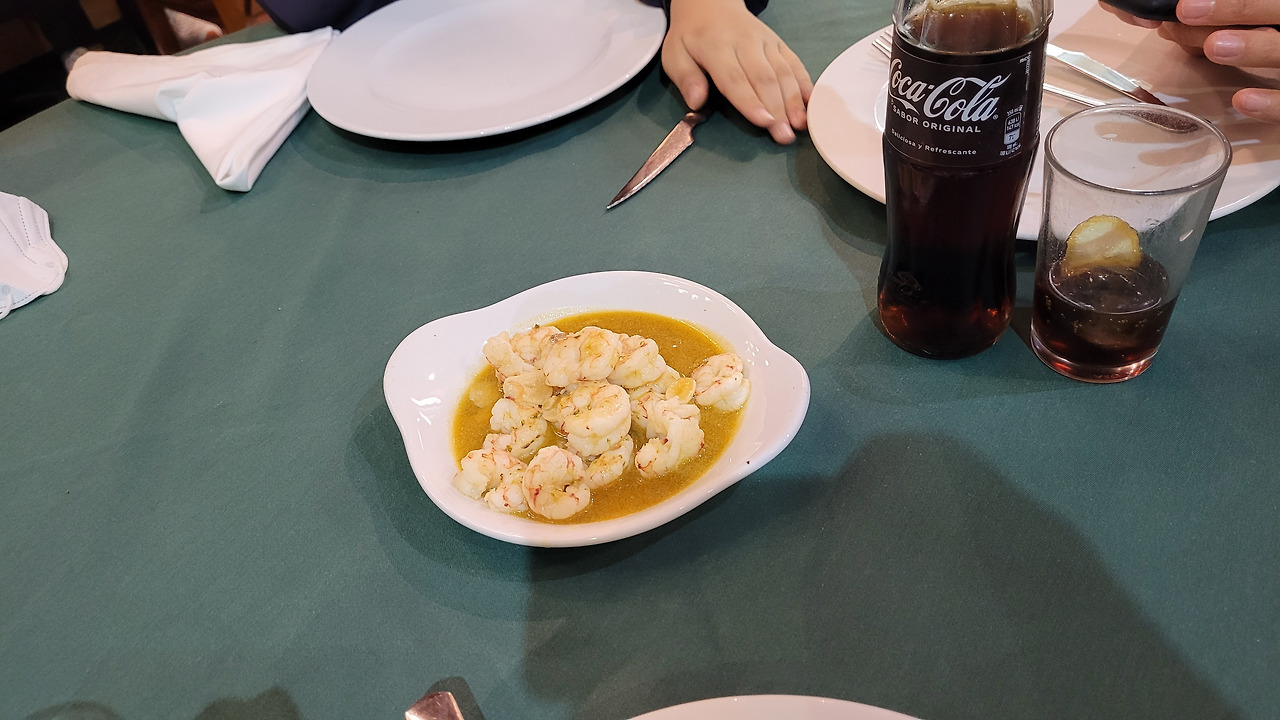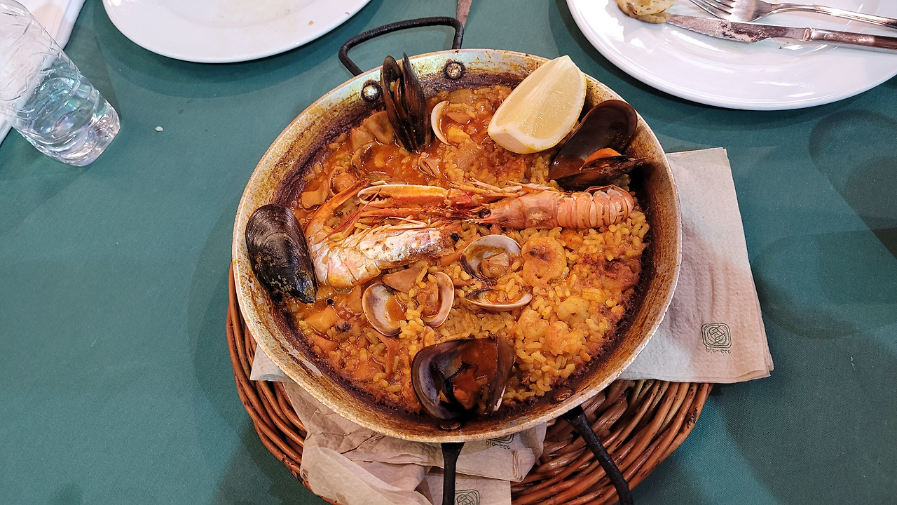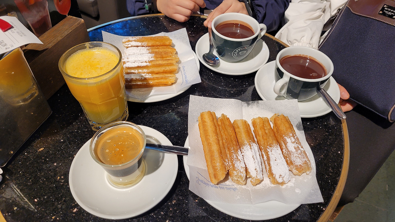 아이는 계속된 도보에 힘들어했지만 함께 잘 걸어줘서 고마웠다. 지친 두 다리를 쉬게 하고 우리도 충전을 할 겸 카페에 가서 초코에 찍어먹는 추로스와 봄본치노 등을 주문해 먹고 여유를 부렸다. 한참 쉬고 난 다음에 바로 저녁 식사를 하기로 했다. 스페인은 대개 점심 식사를 2~4시, 저녁 식사를 8시~10시에 하지만 우린 4시에 저녁을 먹기로 했다. 점심 막바지인지 많은 테이블에는 사람들이 앉아 있었고 우리는 잠시 기다렸다가 자리를 잡았다. 스페인 명물인 파에야와 이베리코 돼지 스테이크, 감바스 요리를 주문하고 마실 것은 상그리아를 점심때 마셔서 콜라만 주문했다. 아마 종업원은 우리가 늦은 점심 식사를 하러 왔다고 생각했을 것 같았다. 요리는 다 괜찮고 나쁘지 않았지만, 가게 분위기가 바빠서 그런지 다소 어수선해 보이긴 했다. 감바스는 적절히 간이 배서 씹는 맛이 있었고 게 눈 감추듯 순식간에 없어졌다. 이베리코 돼지 스테이크는 구워진 풍미가 있었다. 우리가 제일 기대했던 파에야는 각종 해물과 밥의 간이 잘 배어 있어 짭짤하면서 시큼하고 매콤한 맛이 일품이었다. 그릇에 눌은밥까지 깨끗이 긁어먹었다. 아이는 내가 자꾸 희생한다고 좋아하는 가재와 새우 살을 발라주었다. 우리는 저녁 식사를 마치고 나오는데 스페인 사람들은 그때가 점심 식사를 마치는 때였다. 어둑해진 거리를 걸어서 마트에 들러서는 호텔에서 간단히 먹을 과자, 주스, 물 등을 사고 오늘의 여정을 마쳤다.