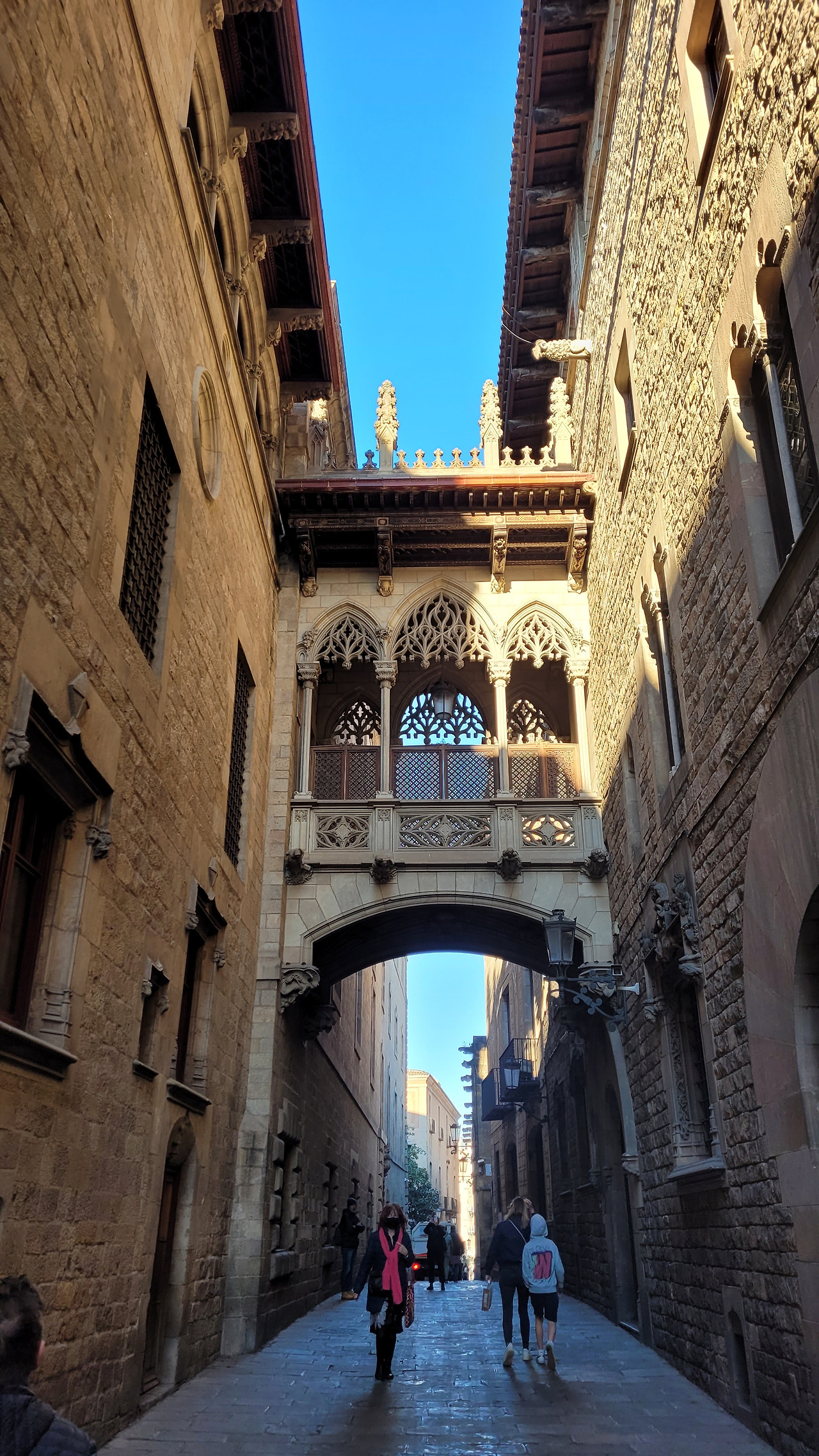 개선문은 파리의 개선문과 비슷한 아치형의 거대한 붉은 모습을 드러냈다. 1888년 세계박람회를 위해 지어진 개 개선문은 크기도 파리 개선문에 비견될 정도로 압도적인 크기를 자랑했고, 회색의 파리 개선문과 다른 매력을 보여주었다. 이곳에서 사진을 찍고 바르셀로나의 한가로운 주말 거리를 걸으며 바르셀로나 대성당으로 갔다. 아이는 왜 맨날 성당을 가냐며 투덜거렸지만 잘 따라다녔다. 몸도 커지면서 생각도 자라나 자기 생각을 이야기하는데 표현력이 좋아지는 게 보였다. 대성당은 1913년에 완공되었지만 최초 공사는 1298년 자우메 2세 때 시작되어 오랜 시간 동안 건설된 성당으로 정면의 파사드는 19, 20세기에 카탈루냐 고전 양식으로 지어졌다. 현재는 부분적으로 보수 공사가 진행되고 있었다. 내부에는 바르셀로나의 수호 성녀인 산타 에우랄리아의 순교 장면이 조각되어 있고, 거위들이 살고 있어서 나름 이색적인 곳이며 고딕 지구의 대표적 랜드마크이다. 성당을 지나서 근처에 있는 산 하우메 광장으로 갔다. 하프 소리가 들리길래 방송을 틀어놨나 싶었는데 거리의 악사가 아름다운 선율을 들려주고 있었다. 문득 피렌체의 시뇨리아 광장이 생각나는 순간이었다. 좋은 음악을 받아서 아이에게 1유로를 주고 갖다 놓고 오라고 했다. 성당 옆에 있는 산 하우메 광장은 그리 크지 않은 광장이지만 의미가 있는 곳이었다. 바르셀로나 시청과 카탈루냐 정부 청사가 자리해 있고 축제가 열릴 때 그 시작을 알리는 곳이기도 했다.