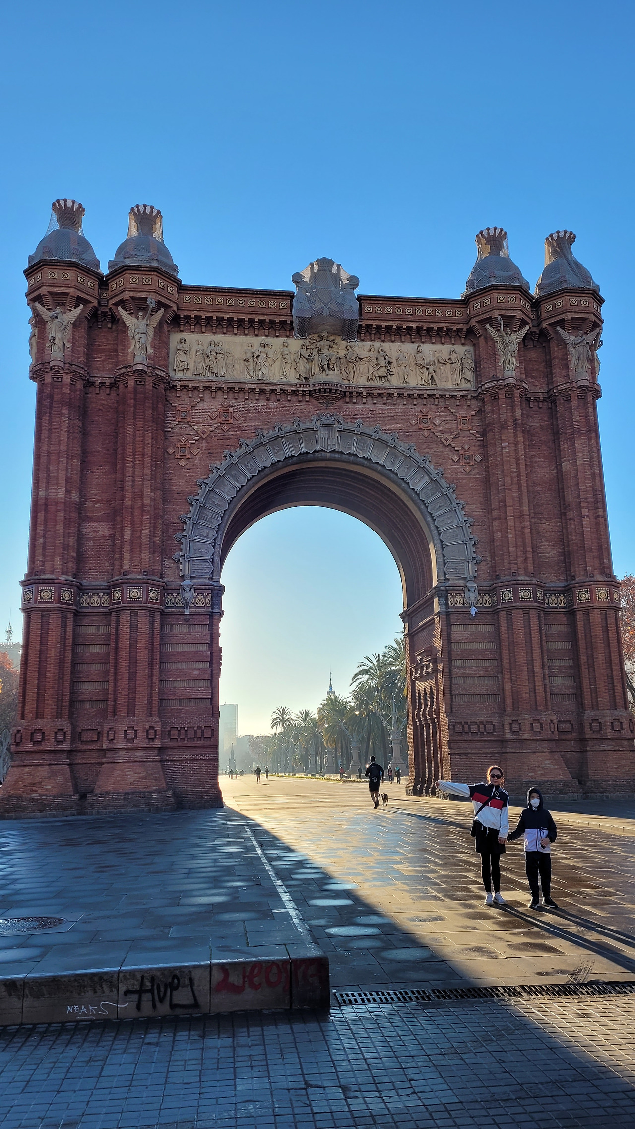 스페인 제2 도시인 바르셀로나는 카탈루냐 지역의 중심도시로 지역색이 매우 강하고 수도인 마드리드와 경쟁 관계에 있으며 수도보다 유명한 관광 도시로 전 세계 사람들을 끌어모으는 매력적인 도시이자 역설적이게 오버투어리즘으로 몸살을 앓고 있는 도시이다. 나에게는 프레디 머큐리가 불렀고, 바르셀로나 올림픽 주제가가 될뻔한 노래로 어렸을 적에 기억된 도시였다. 이 방사형의 거대한 도시는 크게 6 구역으로 나눌 수 있는데 사그리아 파밀리아 성당으로 대표되고 우리 숙소가 있는 에이샴플레 지구, 람블라스 거리와 보케리아 시장이 있는 라발 지구, 시내를 조망할 수 있고 우리에겐 바르셀로나 올림픽으로 친숙한 몬주익 지구, 대성당이 있는 고딕 지구, 아기자기해서 산책하기 좋은 보른 지구와 해변을 끼고 있는 바르셀로네타 지구가 있다. 오늘 볼 곳은 개선문, 바르셀로나 대성당, 보케리아 시장, 람블라스 거리, 구엘 저택, 콜럼버스 기념비, 해양 박물관, 카탈루냐 광장, 카탈라냐 음악당 등으로 라발과 고딕, 보른 지구 쪽이었다.