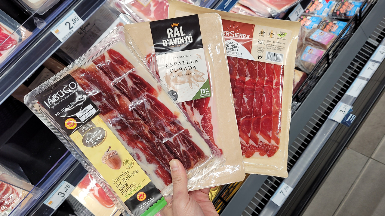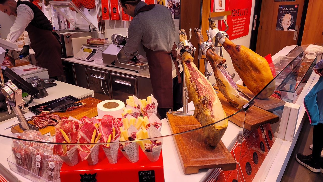 보케리아 시장에 있는 하몬 가게들 중 하나