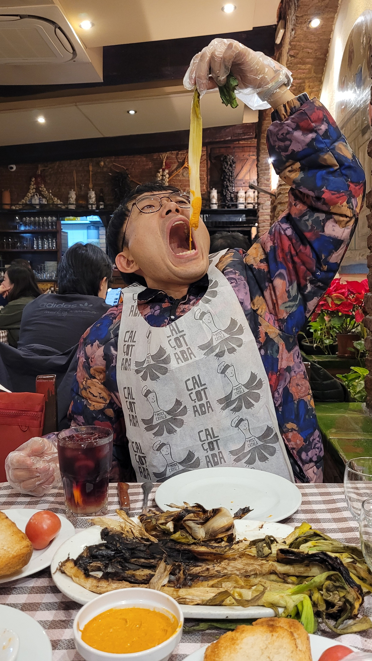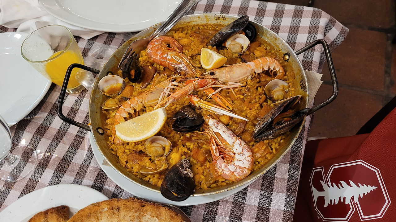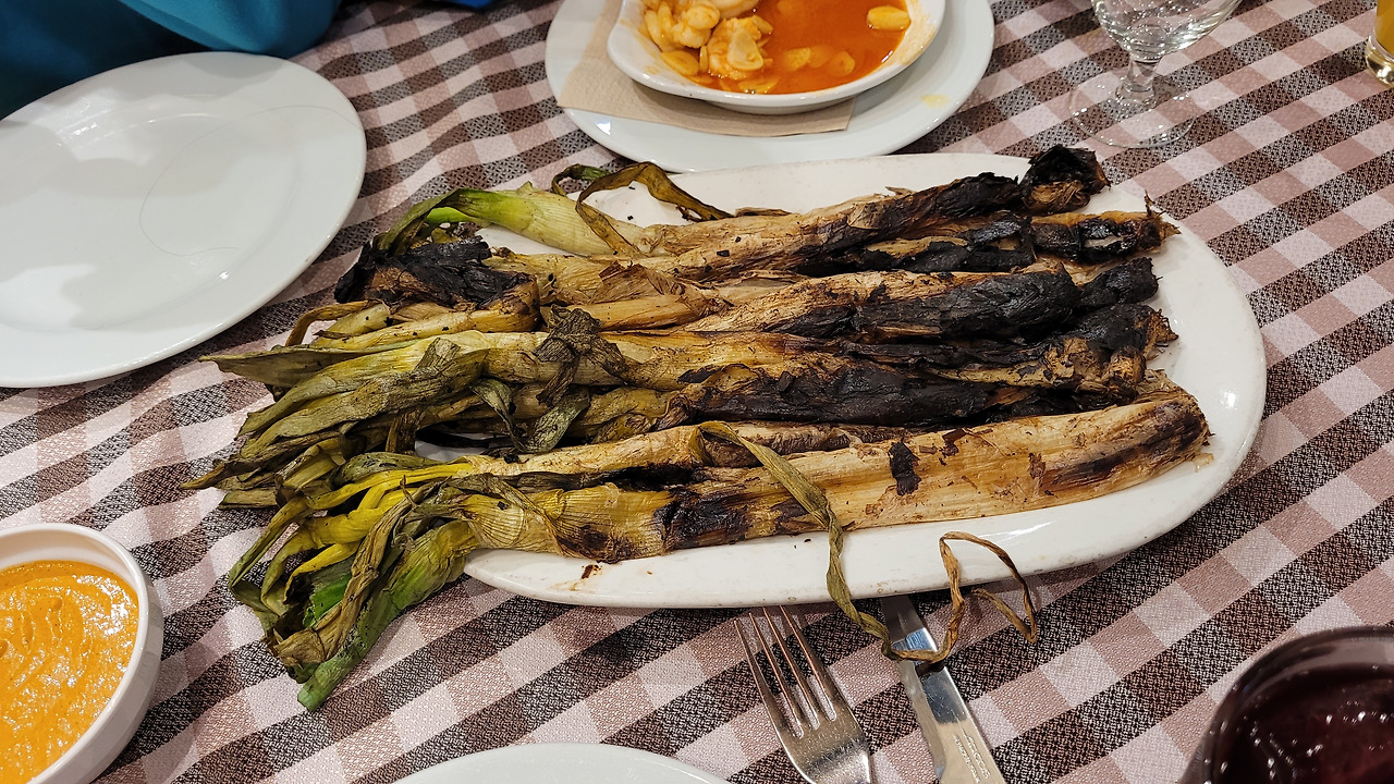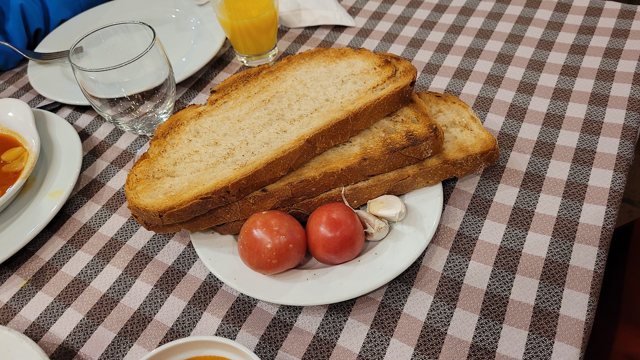 저녁 식사는 내가 먹고 싶어 했던 칼솟을 위해 아내가 찾은 레스토랑으로 정했다. 한 20분을 더 걸어가서 조용한 동네 모퉁이에 있는 식당으로 들어갔는데 잔뜩 걸린 방문 사진들과는 다르게 한산해 보여서 예약 없이 자리를 잡을 수 있었다. 바르셀로나 마지막 만찬이라 이번에도 넉넉히 골랐다. 먼저 대파구이요리 칼솟과 빠질 수 없는 감바스 알 아히요, 파에야, 판 콘 토마테를 주문했다. 나와 아내는 상그리아 대신 틴토 데 베라노, 아이는 어김없이 오렌지 주스를 시켰다. 판 콘 토마테는 직접 마늘과 토마토를 빵에 비벼야 해서 색달랐다. 칼솟은 손으로 대파의 구워진 겉면을 떼어 내고 익힌 속을 먹는 건데, 소스에 찍어먹는 게 내 입맛에 맞아서 아주 맛있게 먹었다. 나머지 요리들도 다 무난해서 스페인 요리가 한국인들에게 잘 어울린다는 게 틀린 말이 아니었다.