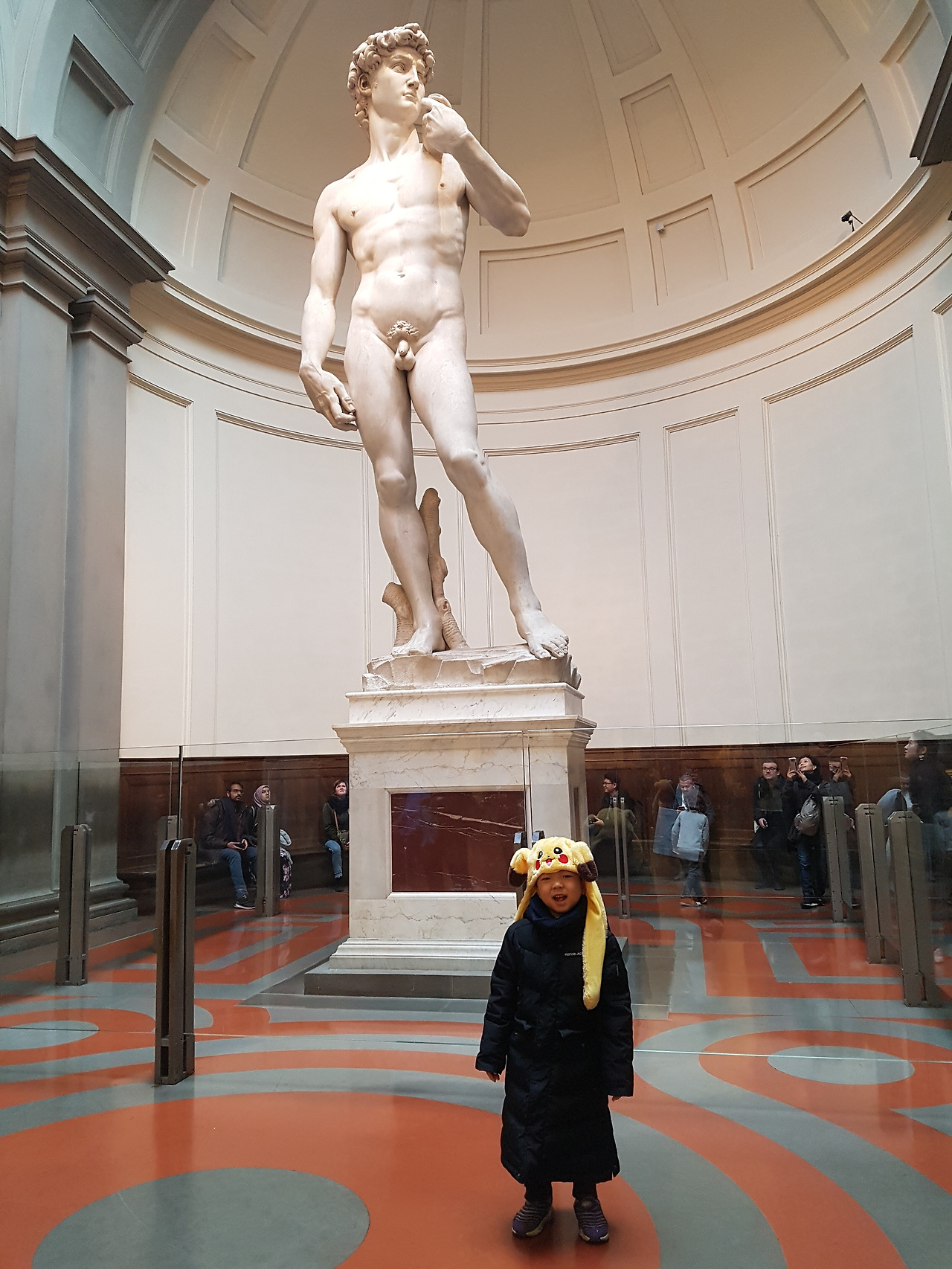 10시에 미술관 예약이 있어서 아침은 먹지 않고 서둘러 짐을 챙겨 체크아웃과 동시에 호텔 데스크에 짐은 맡겨 놓고 나왔다. 밤 사이 비가 내린 피렌체 시내는 파란 하늘 아래에서 더욱 선명한 색깔을 내었다. 서두른 이유는 아카데미아 미술관에 자리 잡고 있는 바로 수많은 작품들을 만들었던 미켈란젤로에게 최고로 평가받는 다비드 조각상을 보기 위해서였다. 사람들이 많이 있을 줄 알았는데 아침에 예약을 해서 그런지 의외로 한산해서 호젓하게 감상을 할 수 있었다.