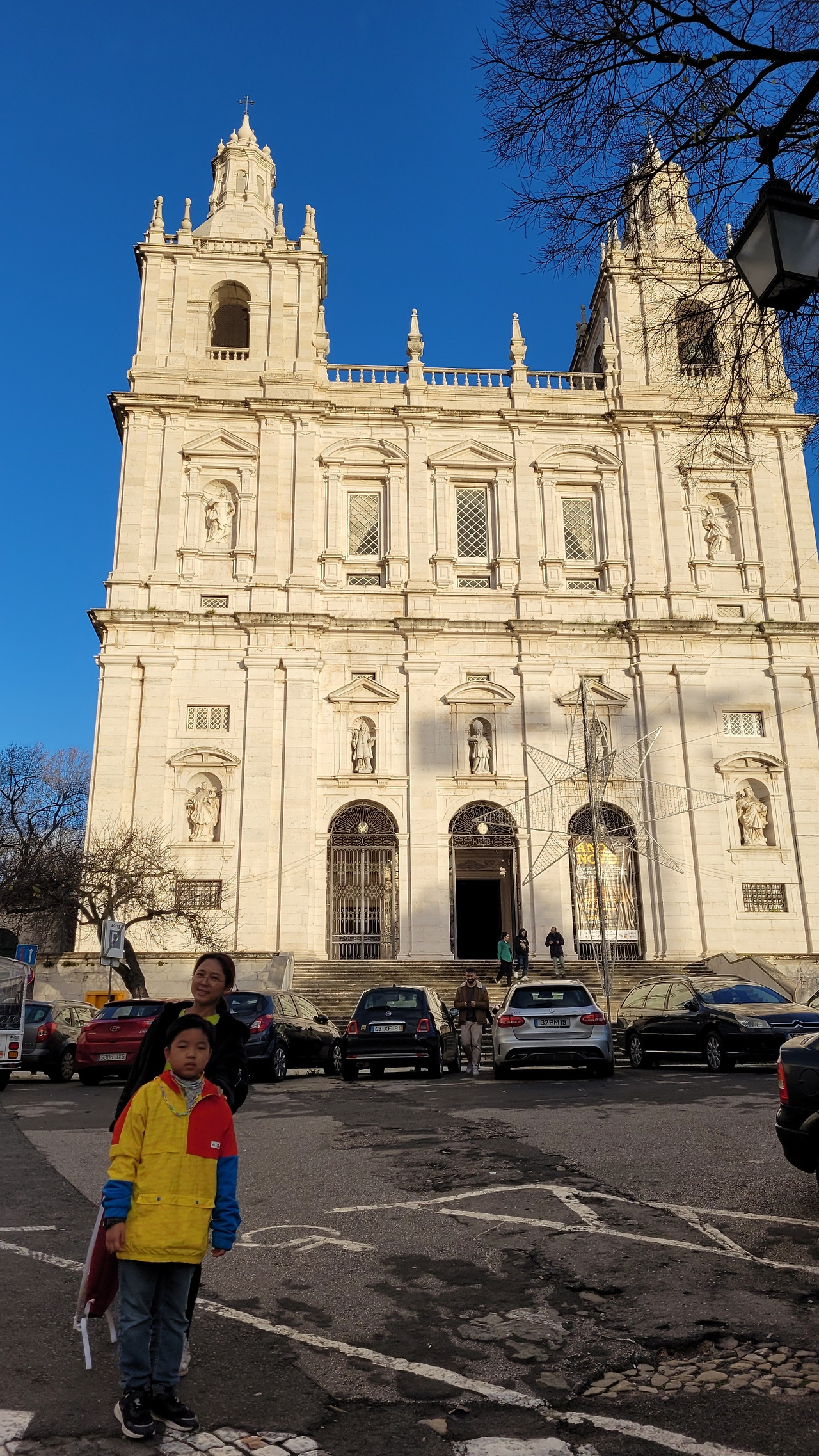 공항 안에서 짐을 찾는 데까지 꽤 오래 걸어야 했다. 나와서는 택시 승강장에 차례 대로 대기 중인 택시에 탑승했는데 우리 차례의 택시는 벤츠 대형 택시여서 시내 목적지까지 가는데 꽤나 가격이 나오겠다 싶었다. 20여 분을 달려서 리스본 크루즈 항구를 지나 우리 숙소가 있는 골목에 도착했다. 계단이 있어서 그 이상의 진입은 어려웠다. 짐을 내리고 골목 계단을 조금 올라가니 계단이 별거 아니구나 싶었지만 우리 방이 3층이어서 가파른 내부 계단을 24kg 캐리어를 들고 올라갔다. 고생은 잠시, 창문 밖 경치가 정말 멋있었다. 푸른 테주 강의 물줄기와 하늘, 주황빛 기와지붕, 하얀 벽의 색감이 마음을 편안하게 했다. 일단 짐을 놓고 바로 거리로 나갔다. 먼저 들를 곳은 상 빈센테 드 포라 수도원이었다.