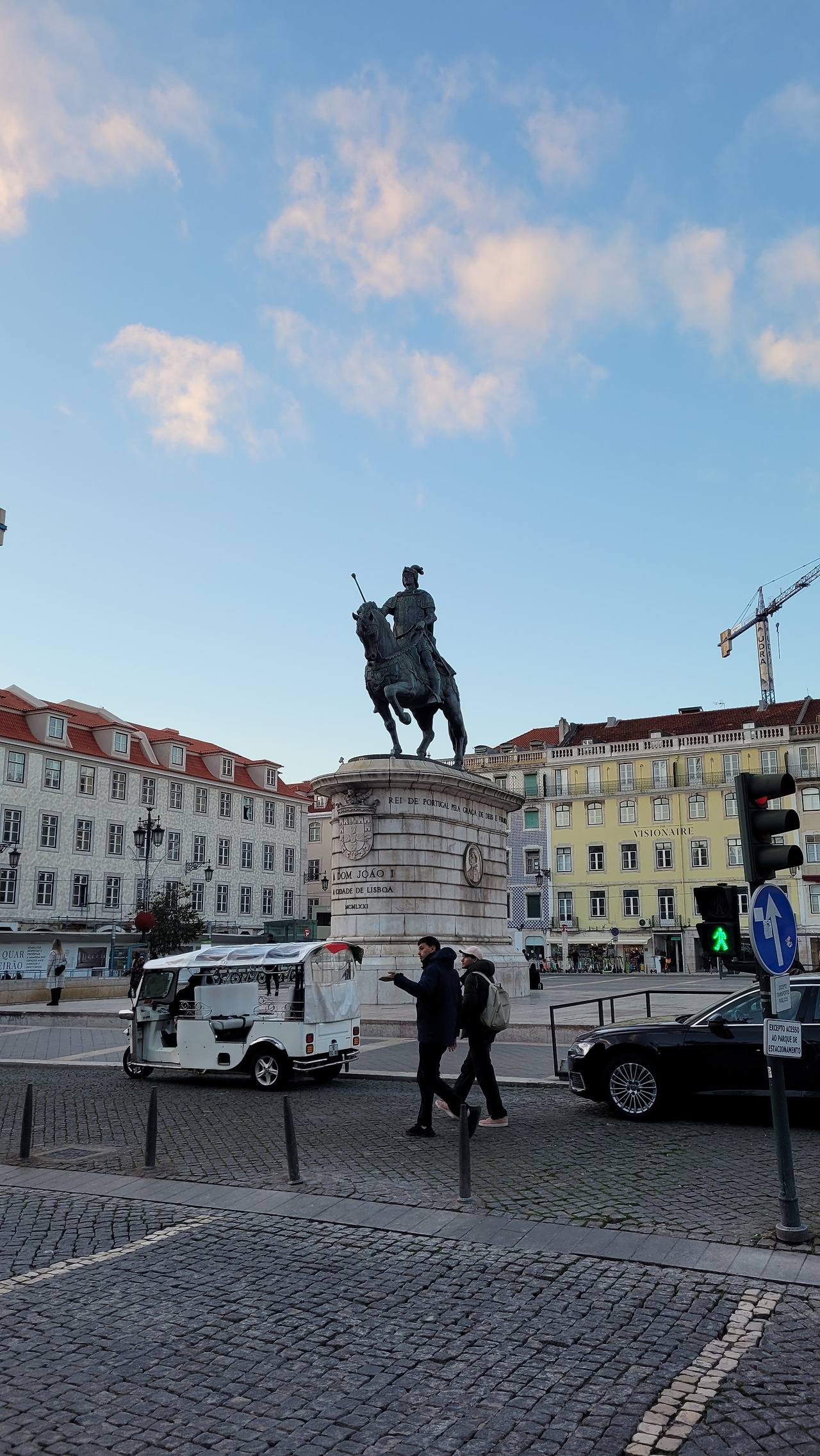 호시우 광장은 페드로 4세 광장으로도 불리는데 리스본의 중심 광장으로 한쪽에는 화려하게 만들어진 27m의 분수대가 있었다. 겨울이라 그런지 물줄기를 뿜고 있지는 않았다. 중앙에는 광장 이름에 걸맞게 페드로 4세 동상이 있었다. 물결무늬 바닥을 보니 마카오의 세나도 광장이 떠올랐다. 이곳에서 어떤 시위를 하고 있는지 경찰들이 출동해서 제지하고 있는 모습을 보았다.