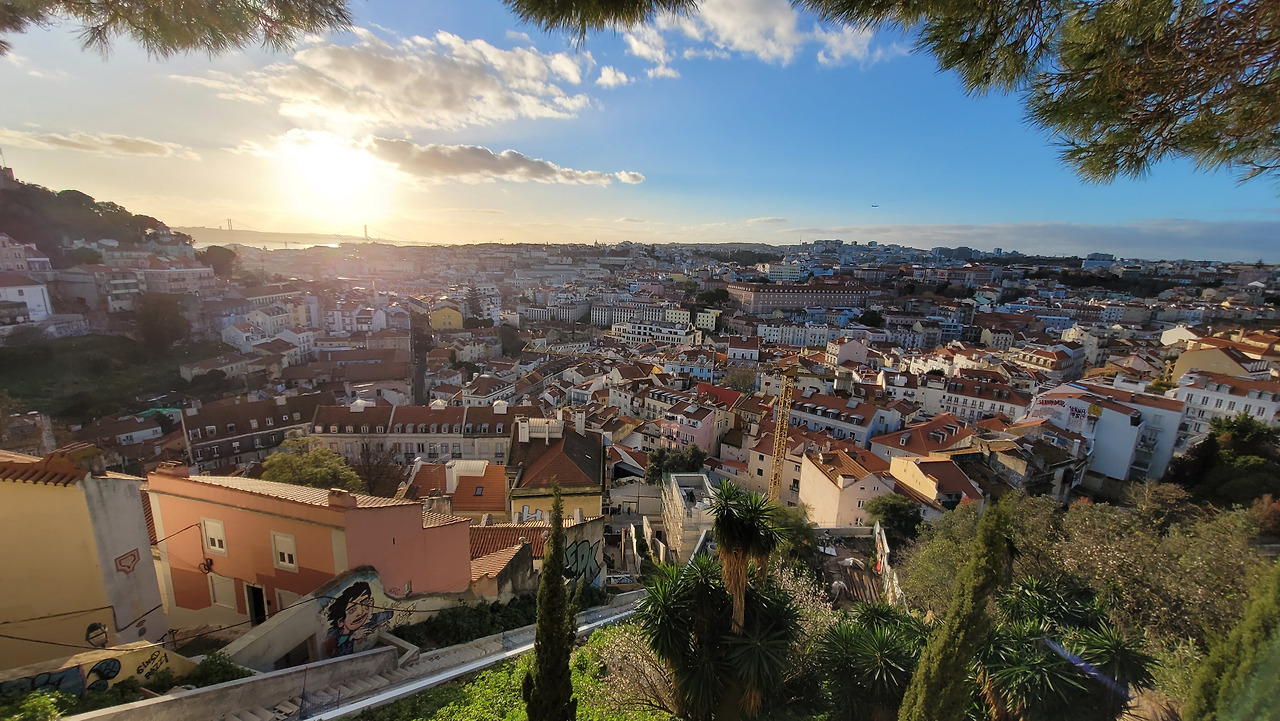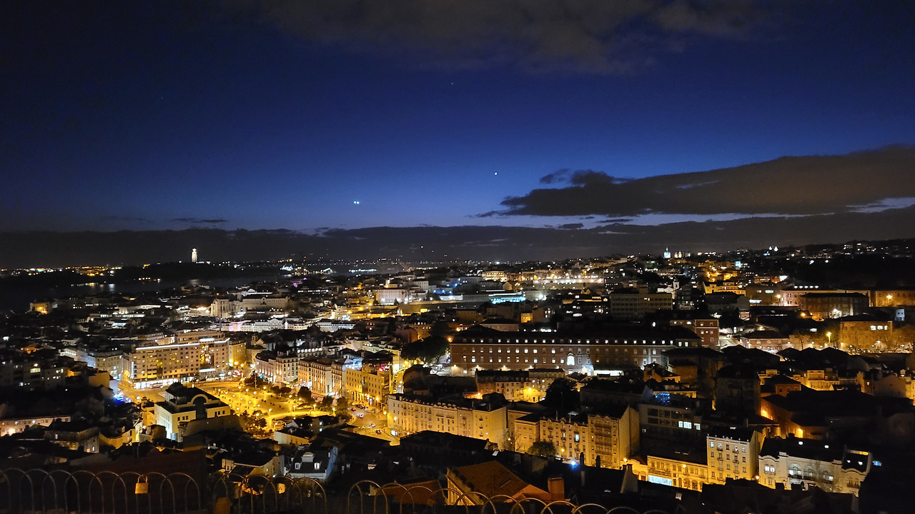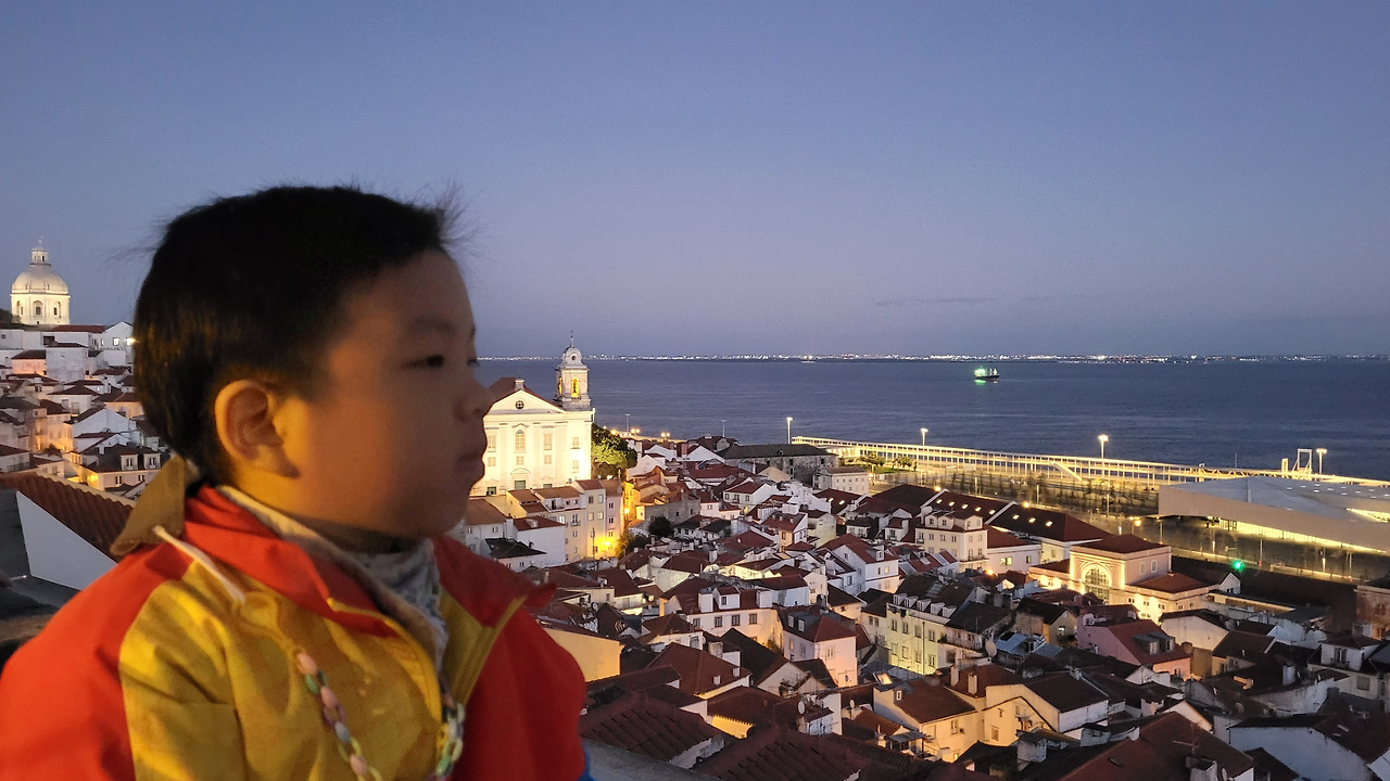 대성당을 지나 조금 더 올라가면 유명한 포르타스 두 솔 전망대가 나왔다. 이곳은 리스본 배경의 다큐에서 빠지지 않는 명소로 구 시가지인 알파마 지구의 언덕을 오르면 등장하는 광장이다. 이미 어둑해진 시간은 금세 야경을 선물로 내주었다. 아이는 이런저런 포즈를 하더니 사진을 찍어달라고 했다. 이곳이 마음에 들었나 보다. 바다로 착각하기 쉽지만 탁 트인 테주강을 배경으로 선박 불빛이 별빛처럼 반짝였다. 도시 야경이 아쉬워서 세뇨라 두 몬테 전망대까지 가보자고 했다. 아이는 또 걸어야 하니 질색했지만 같이 하는 여행이니 잘 걸어주었다. 15분 정도 올라가니 리스본 시내가 탁 트여서 상 조르제 성은 물론이고 4월 25일 다리까지 보였다. 두 눈에 리스본 야경을 가득 담고 내려왔다.