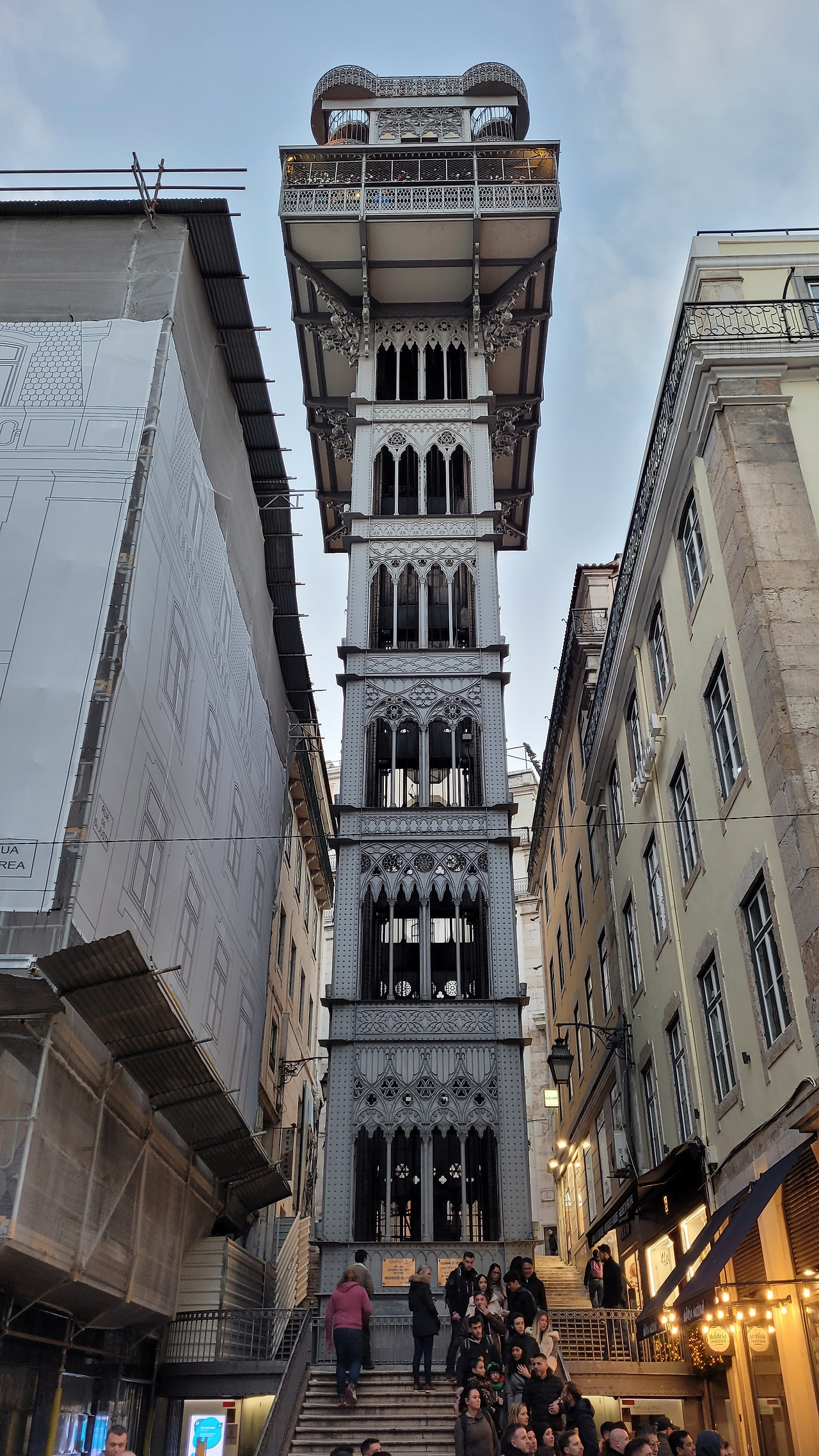광장에서 얼마 못 가 나오는 산타 후스타 엘리베이터는 리스본의 명물로 꼭 방문하는 장소 중에 하나이다. 관광객들이 타는 목조 엘리베이터로 바이샤 지구와 바이후 알투 지구를 연결해 준다. 전망대는 45m 높이로 호시우 광장과 테주 강까지 보였다. 이곳으로 가는 길에 도로에서 요란한 바이크 운전자가 자동차 운전자에게 시비를 걸어 서로 주먹질하는 상황이 벌어져서 경찰이 출동하는 일까지 있었다. 한 시간도 안되어 경찰 출동을 2번 보다니 첫날치곤 시끌벅적한 인상이었다.