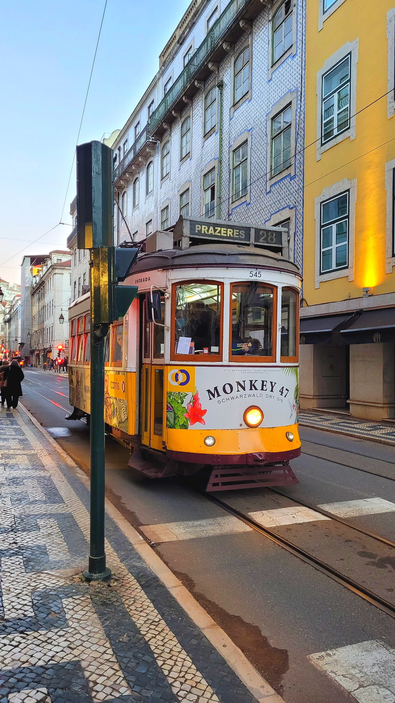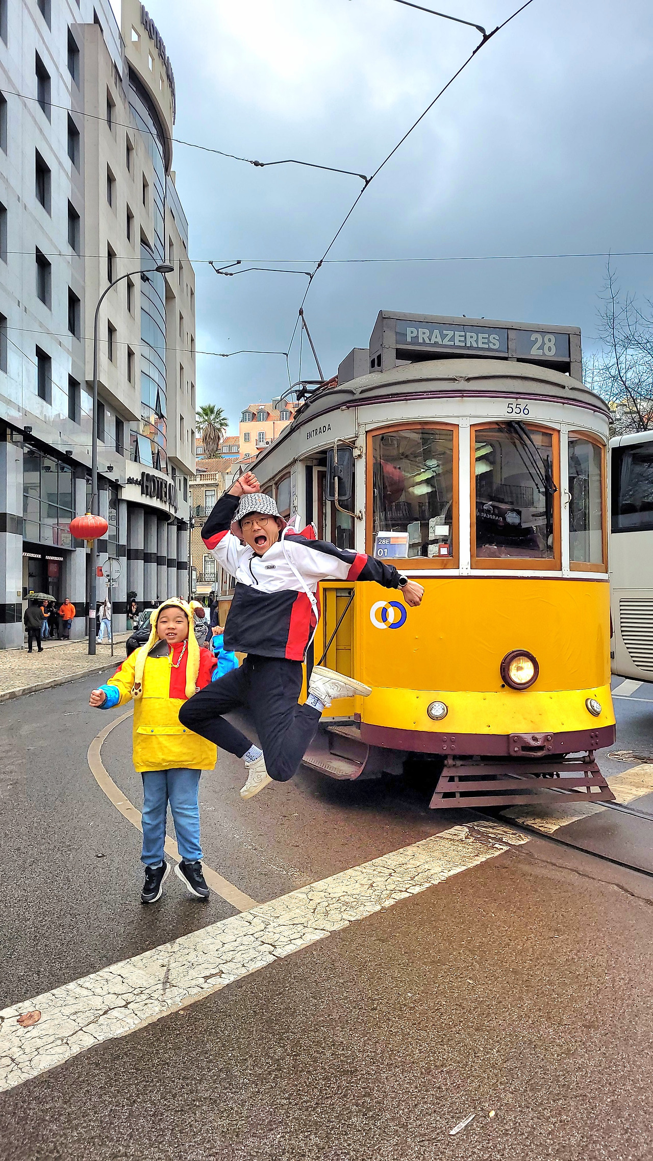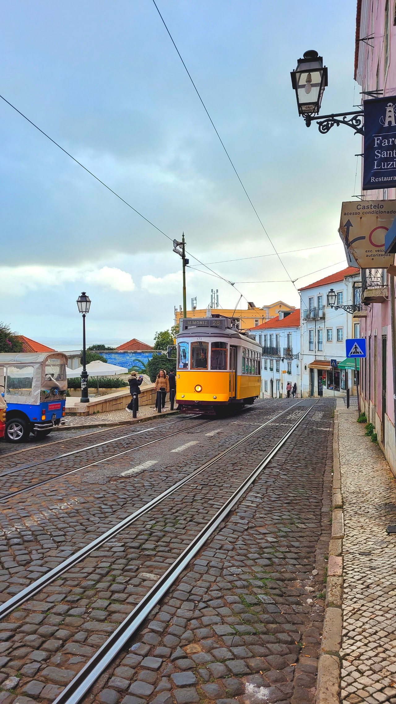 식사를 하고 나서 트램 일주를 하기로 했으니 근처 트램 정류장에서 28번 트램을 기다렸다. 리스본 구시가지는 트램으로 골목마다 연결되어 있는데 이걸 타는 것이 리스본 여행 목적 중 하나였다. 특히 28번은 주요 관광지를 지나서 많은 관광객, 여행객이 즐겨 찾는 트램이었다. 우리나라에는 없는 교통수단이어서 기대가 되었다. 몇 분 후 트램이 오자 탑승했다. 1인당 3유로인데 카드계산이 안되어 현금으로 냈다. 자리가 없어서 일단 서서 가다가 아이부터 앉혔다. 놀이기구 같은 느낌이 나서 다들 좋아했다. 지나가는 길에 아슬아슬하게 마주 오는 트램을 스치거나 건물, 자동차를 지나갈 때면 운전 기술에 놀라지 않을 수 없었다. 우리나라에서는 옛날 영상에서나 볼 수 있는 모습이어서 이색적인 경험이었다.