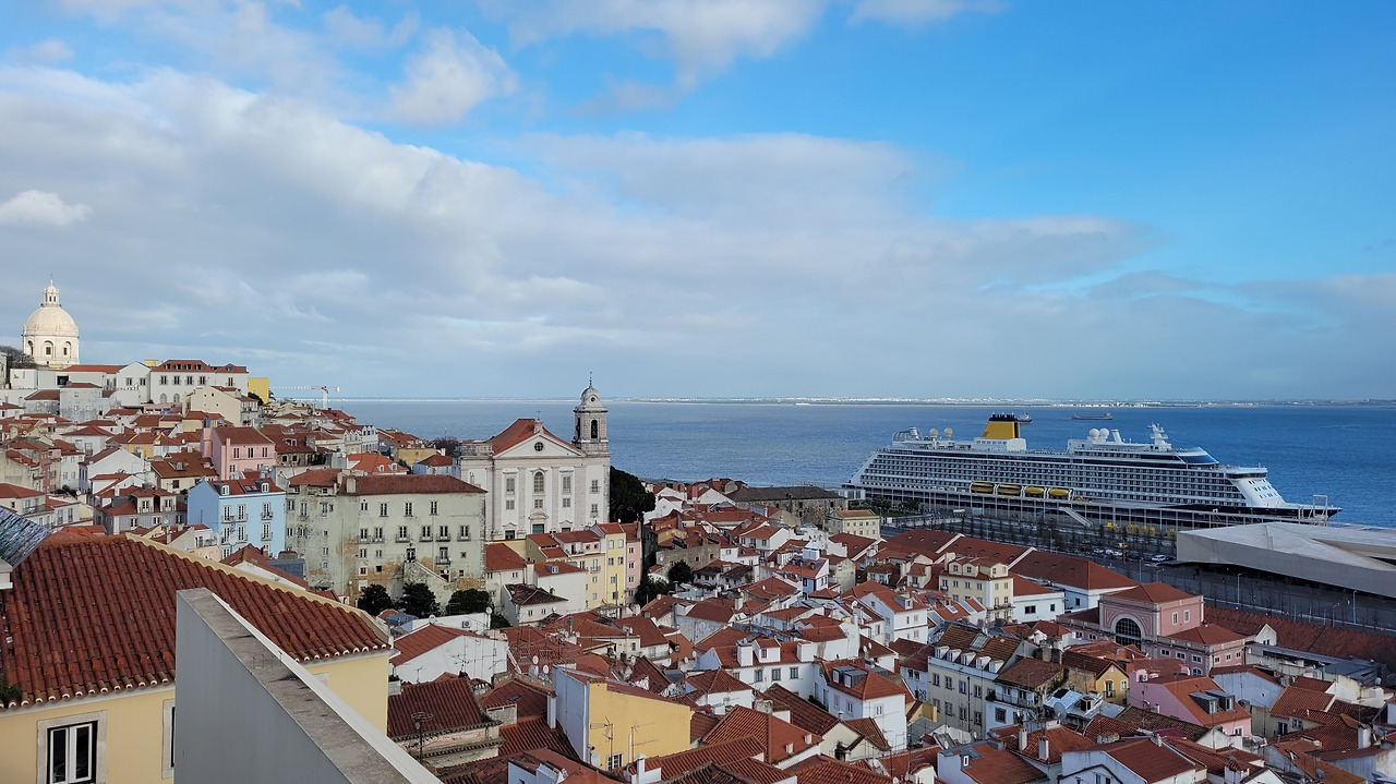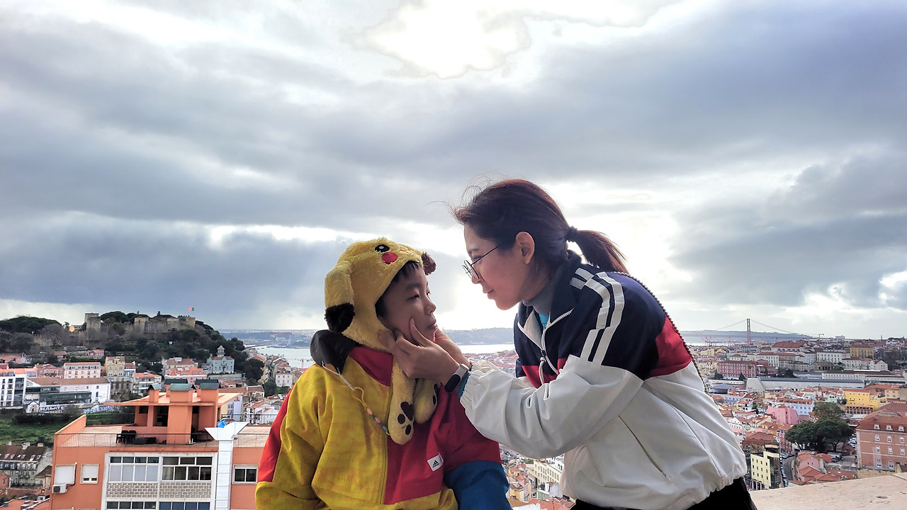 바로 마트를 가기에는 시간이 남아서 어제 갔던 전망대들을 가보기로 했다. 먼저 세뇨라 두 몬테 전망대에 가서 리스본 낮 전경을 감상했다. 야경의 모습과는 다르게 풍경 안의 다리, 건물, 광장 등이 뚜렷하게 보였다. 아이는 왜 지붕이 다 주황색인지 궁금해했다. 나중에 숙소로 돌아와서는 여행 책자의 스페인 국기 설명에 붉은색은 피, 노란색은 풍요를 상징한다는 대목을 읽고 두 가지 색이 섞여서 주황색이라는 나름의 결론을 냈다. 궁금한 것을 찾아보는 게 기특했다. 그리고 그로사 전망대를 들렸다가 포르타스 두 솔 전망대까지 갔다. 거기서 사진 찍어달라는 부탁을 받았는데 그러고 보면 여기저기 다니며 사진 부탁을 참 많이 받고 찍어준 듯했다. 가는 곳마다 그랬던 것 같다. 곳곳에 다니면서 주석 유약으로 그림을 그려 만드는 포르투갈 특유의 타일 장식인 푸른 타일, 아줄레주가 참 멋스러웠다.