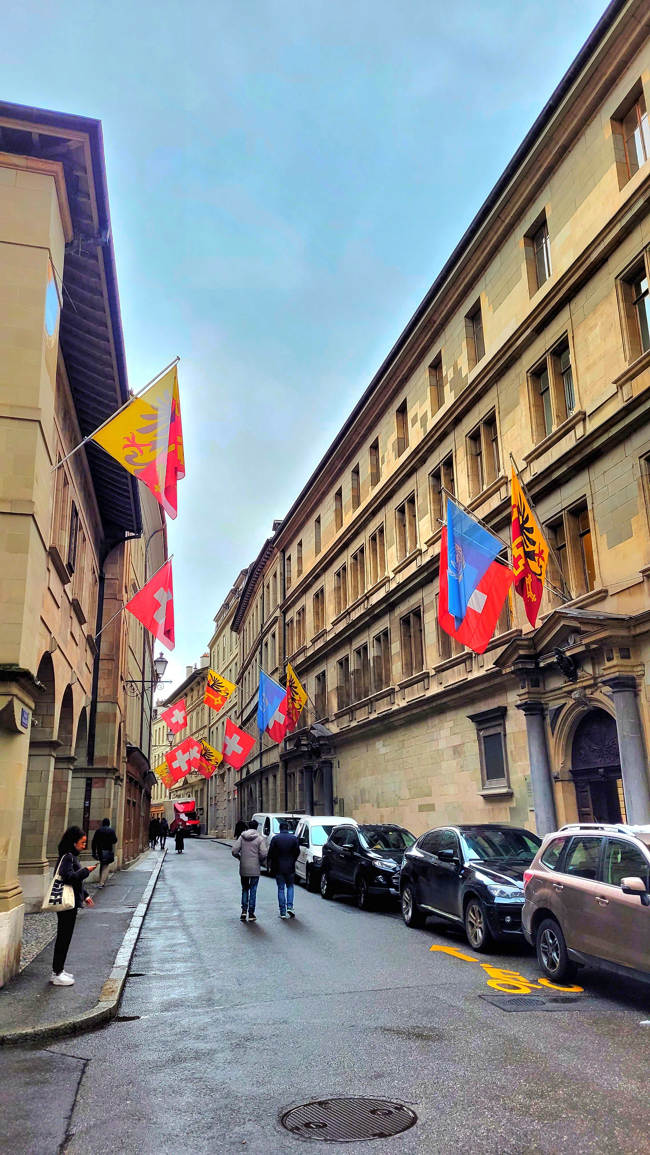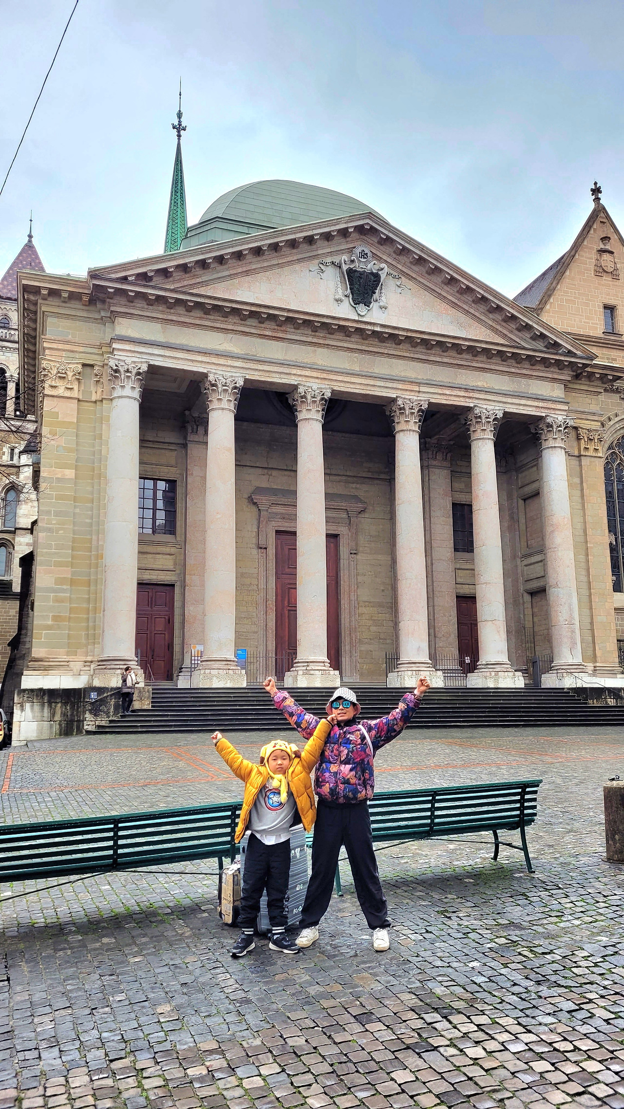 우리는 제네바를 거쳐서 베른에서 환승한 다음 골든라인이라 부르는 기차 노선을 타고 인터라켄으로 가는 일정을 계획했다. 제네바는 베른, 취리히와 더불어 스위스를 대표하는 도시이고 프랑스어권에서는 가장 큰 도시이다. 그리고 국제적인 외교도시로서 세계보건기구, 국제적십자위원회, 국제노동기구, 유엔난민고등판무관실 등 많은 국제기구가 있다. 도착한 제네바 국제공항에서 시내까지 전철을 타고 왔다. 역에 짐을 맡길까 했는데 9스위스프랑이어서 너무 비싸 가지고 다니기로 했다. 먼저 우리의 목적지인 생 피에르 성당으로 향했다. 이곳은 개신교의 유명한 종교 개혁가 칼뱅이 설교했던 곳으로 유명한 곳으로 앞모습은 판테온 같지만 내부는 정갈하고 담백한 모습이어서 여느 유럽의 성당들과는 달랐다. 시간이 많지 않아서 다시 시내 쪽으로 들어왔다. 몽블랑 다리와 분수를 배경으로 멋진 사진을 남겼다. 이 주변은 전 세계 굴지의 은행과 시계 명품들이 있어서 스위스라는 걸 실감케 했다.