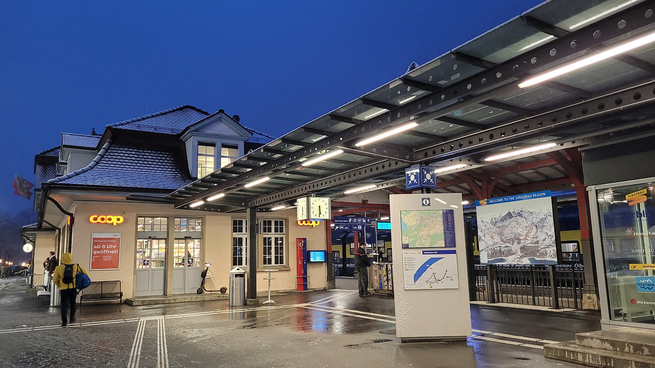 우리는 베른에서 환승해야 하는데 5분 연착되어 여유시간 3분을 남기고 내렸다. 아내가 미리 환승 플랫폼을 핸드폰으로 검색한 결과 5번 플랫폼이었는데 바로 옆이어서 손쉽게 갈아탈 수 있었다. 인터라켄은 스키 시즌이어서 그런지 만석이었다. 우리도 사람들 틈에 끼어 겨우 자리에 앉아갔다. 종점역이 인터라켄이라 다들 거기서 내리는 듯했지만 튠에서 많이 내리고 그다음은 한산하게 갔다. 창밖으로 보이는 각 도시들 풍경 보는 재미도 색달랐다. 안내하는 멘트가 프랑스어, 독일어, 영어 등으로 들리고 사람들 대화 소리도 프랑스어, 독일어, 이탈리아어로 다양하게 들리는 게 다국어 국가다웠다.신기한 게 제네바를 시작으로 베른을 지나가면서, 안내 방송에서 프랑스어가 사라지고 독일어와 영어만 나왔다. 검표원이 주요 역을 지날 때마다 표 검사를 했는데 프랑스어에서 독일어로 바뀌어있었다.