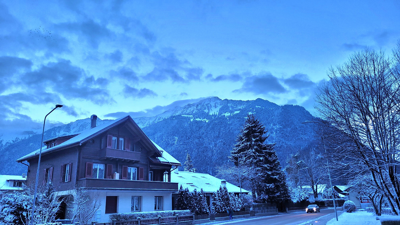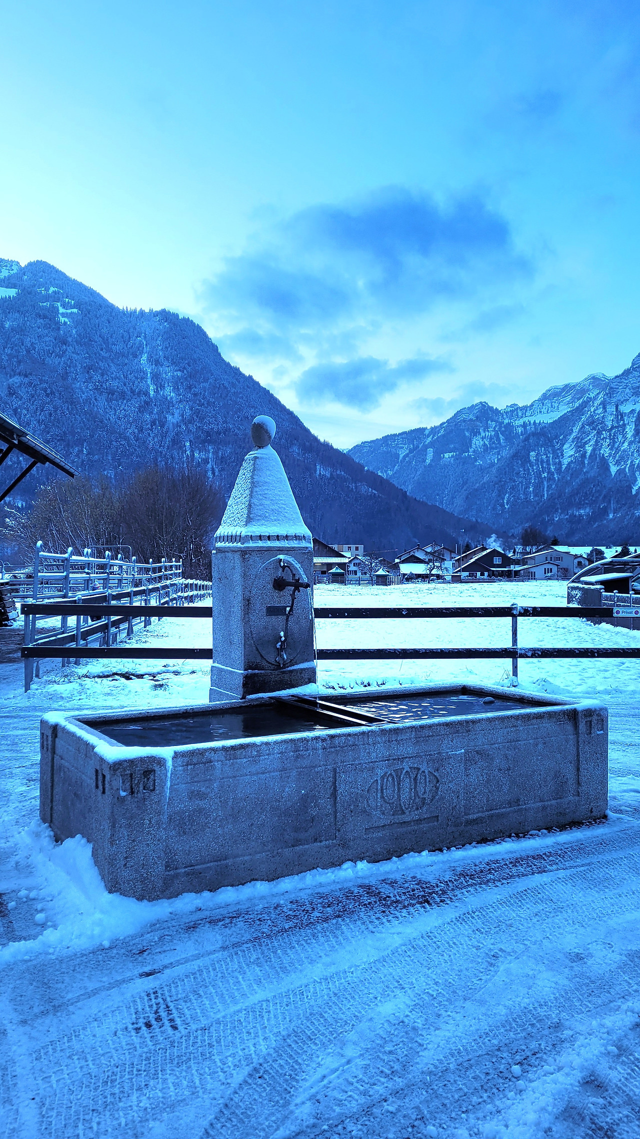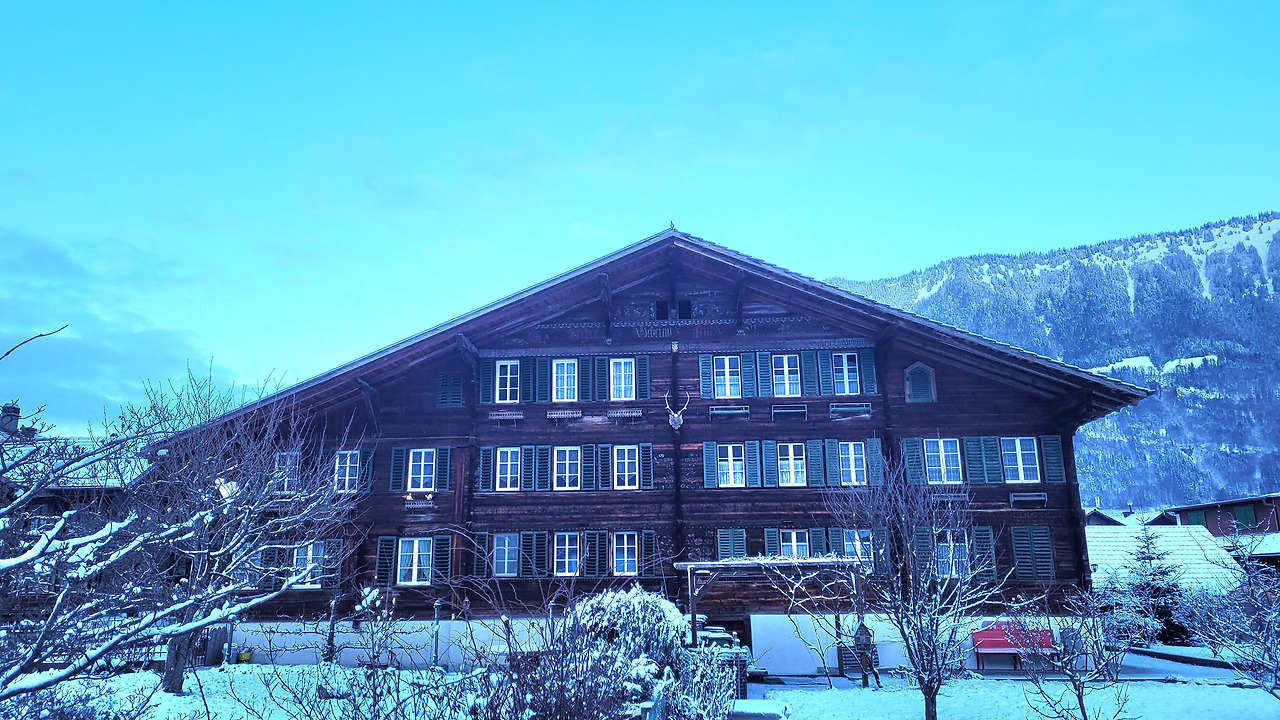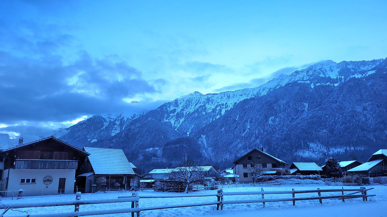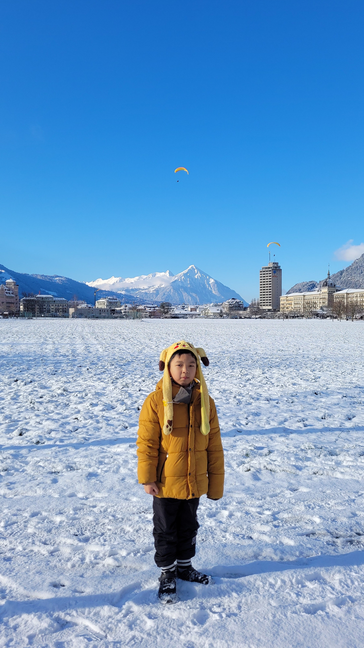 알프스의 이른 아침 공기를 느껴보며 식사 준비를 했다. 간단하게 달걀 프라이에 어제 사 온 빵을 데우고, 마멀레이드 잼을 발랐다. 커피 머신이 있어서 커피도 내려서 따뜻한 식사를 했다.추운 날씨여서 다들 단단히 준비를 하고 숙소 밖으로 나갔다. 눈이 그치고 푸르고 시린 공기가 세상을 품고 있었다. 알프스 산맥이 병풍처럼 둘러싼 인터라켄은 튠 호수와 브리엔츠 호수 사이에 있는 작은 도시로 우리는 브리엔츠 호수를 보기로 했다. 한 40분 정도 걸어가며 낯선 곳에서 사는 사람들의 모습도 보고 풍경도 사진으로 남겼다. 날이 추웠지만 걸으면서 둘러보면 알프스가 우리를 감싸고 있는 듯해서 우리의 눈동자는 황홀했다. 특히 우뚝 솟은 설산의 위용은 장관이었다. 브리엔츠 호수는 알프스의 만년설이 녹아내렸는지 짙은 옥색을 띠며 황홀한 풍경을 우리에게 선사했다. 호수에는 우리뿐이어서 이런저런 사진을 많이 찍었다. 푸른 호수를 두 눈동자에 가득 담고 다시 숙소로 돌아갔다. 언덕에서 엉덩이 눈썰매를 타며 아이가 엄청 좋아했다.