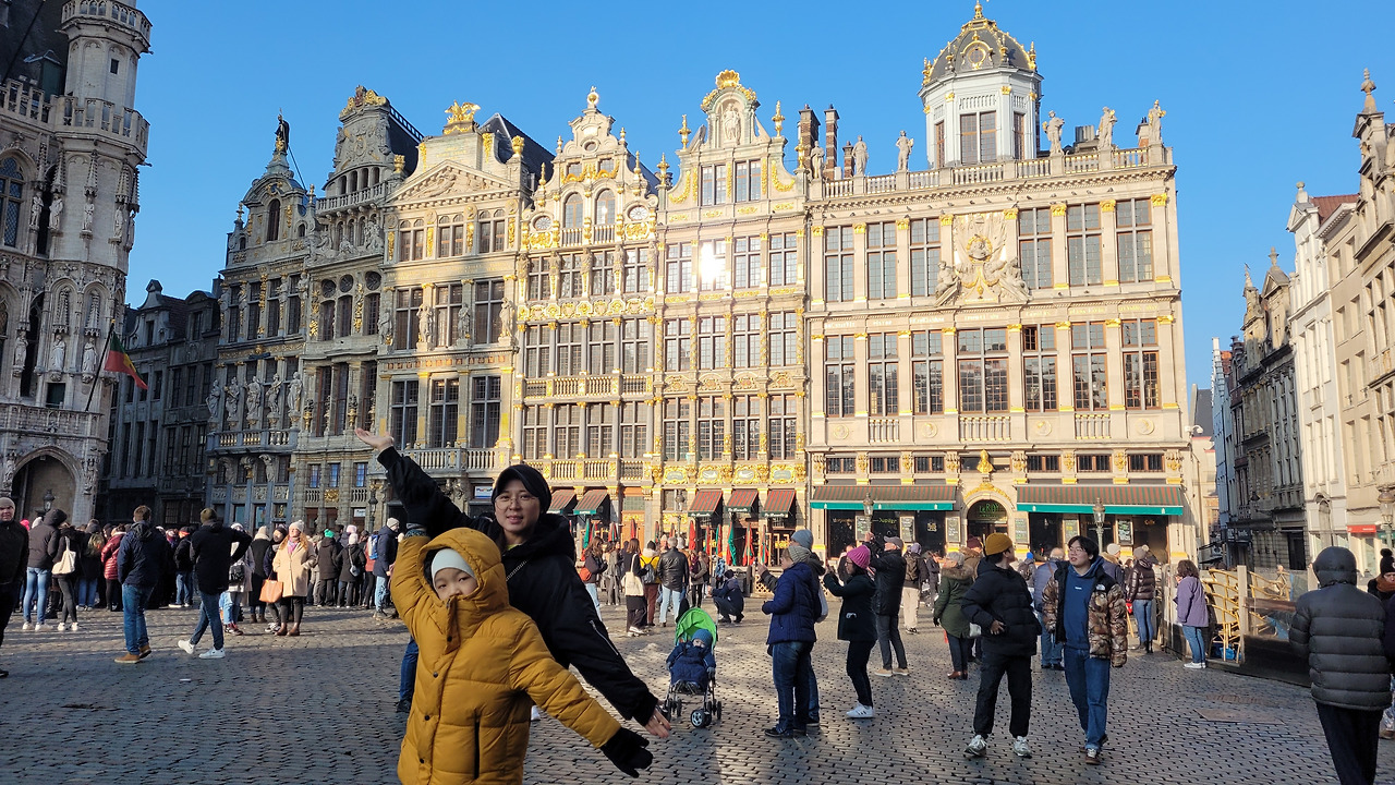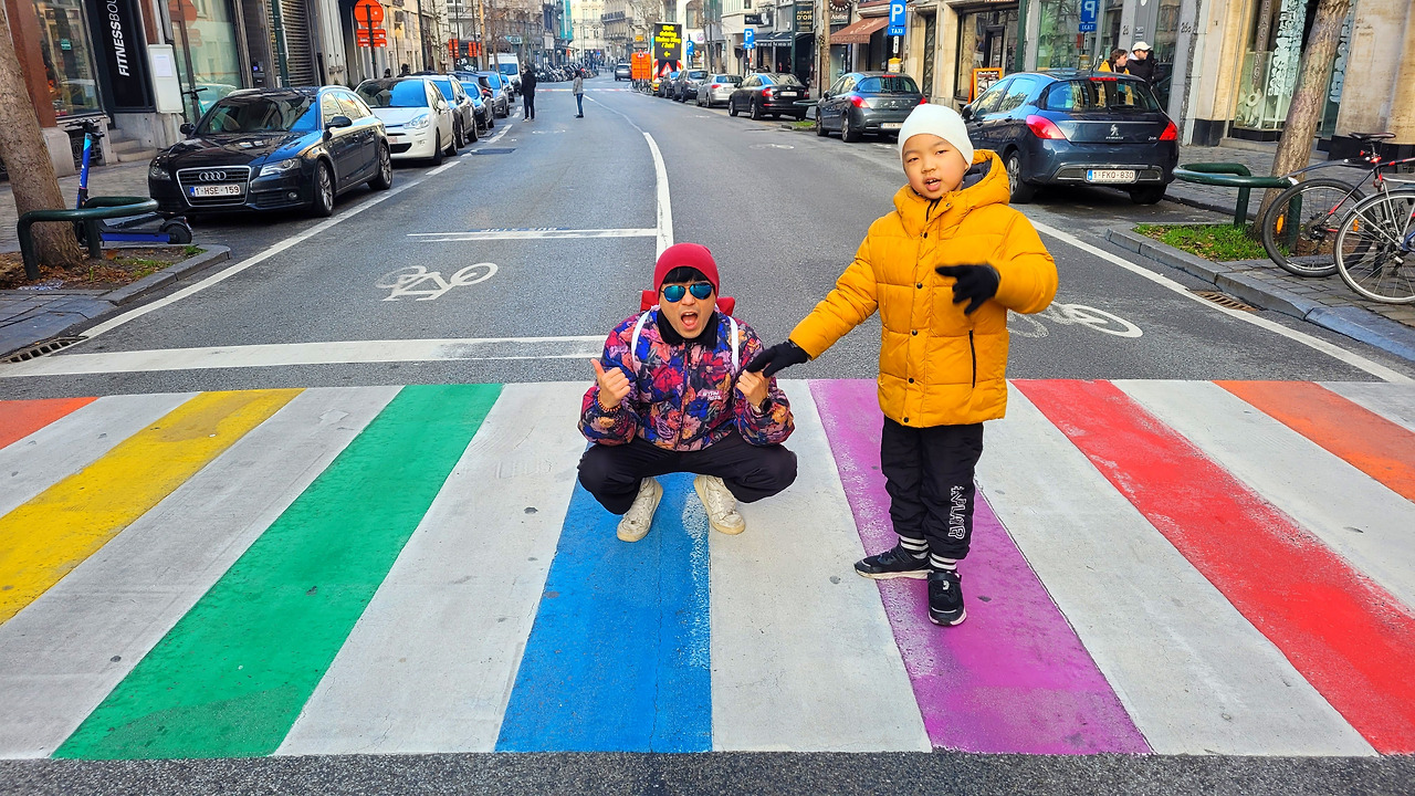 가는 길에 있던 작은 횡단보도가 무지개로 그려져 있어서 자유로운 이곳의 분위기를 보여주는 듯해서 마음에 들었다. 그랑 플라스 초입에 플랑드르 군대를 물리쳤던 영웅 에베라르트 세베클래스 동상이 있는데 그의 팔을 만지면 행운이 있다는 설이 있어서 팔 주위가 반들반들했다. 거리를 나오니 완전히 딴 세상이 펼쳐졌다. 많은 유럽의 도시 광장을 가봤지만 가장 화려한 모습을 뽐내는 곳이었다. 유럽 최고라고 일컬어지는 마드리드의 마요르 광장보다는 면적에서 작을지 몰라도 황금색으로 물든 광장 건물들이 주는 감동은 감탄을 자아내기에 충분했다. 브뤼셀을 방문한 전 세계 관광객, 여행객이 다 여기에 온 듯 많은 이들이 있었다. 수많은 사람이 흔드는 국기는 각양각색이고, 입에서 나오는 말들도 각기 달랐다. 아이는 땡땡 생각으로 가득 차 있는지 별 감흥이 없어 보여서 조금 보다가 근처에 있는 땡땡 기념품 가게에 데리고 갔다.