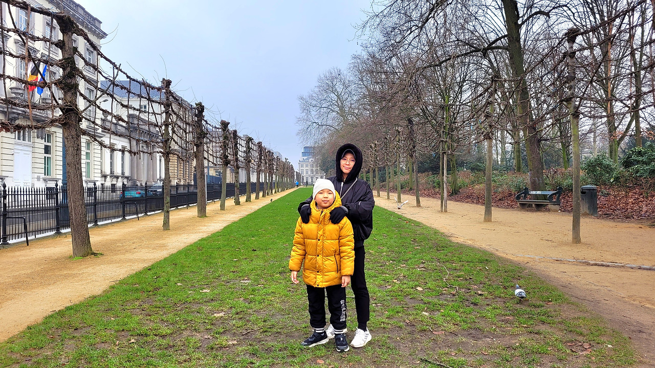 브뤼셀 공원에서 아내와 아이