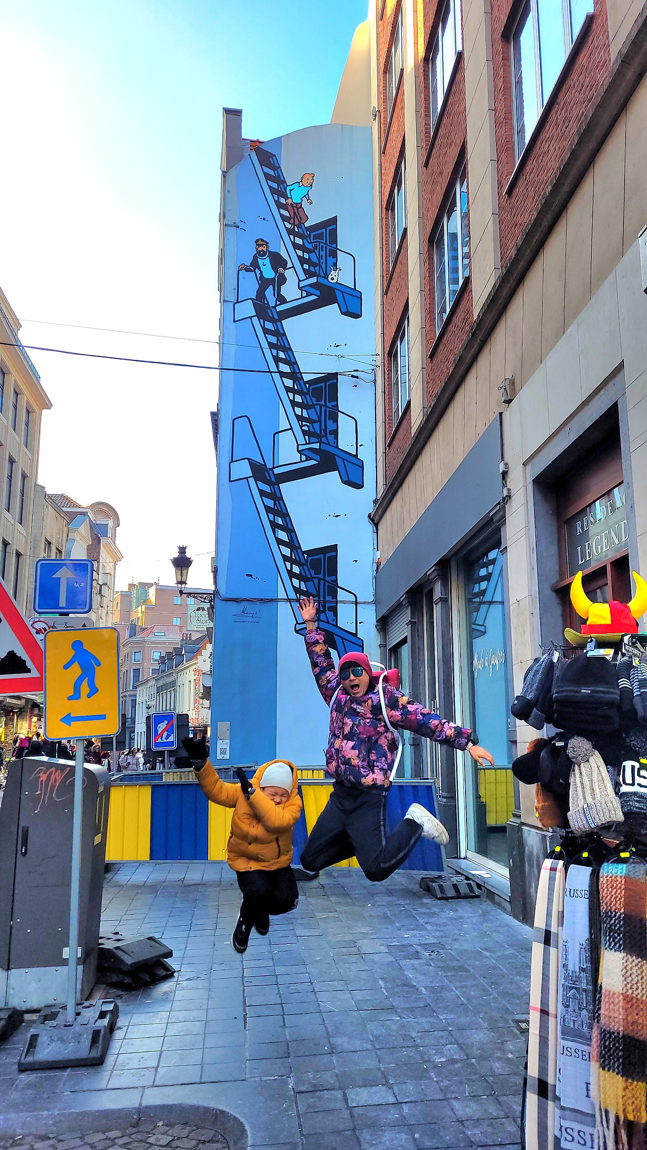 땡땡 벽화를 배경으로 점프샷