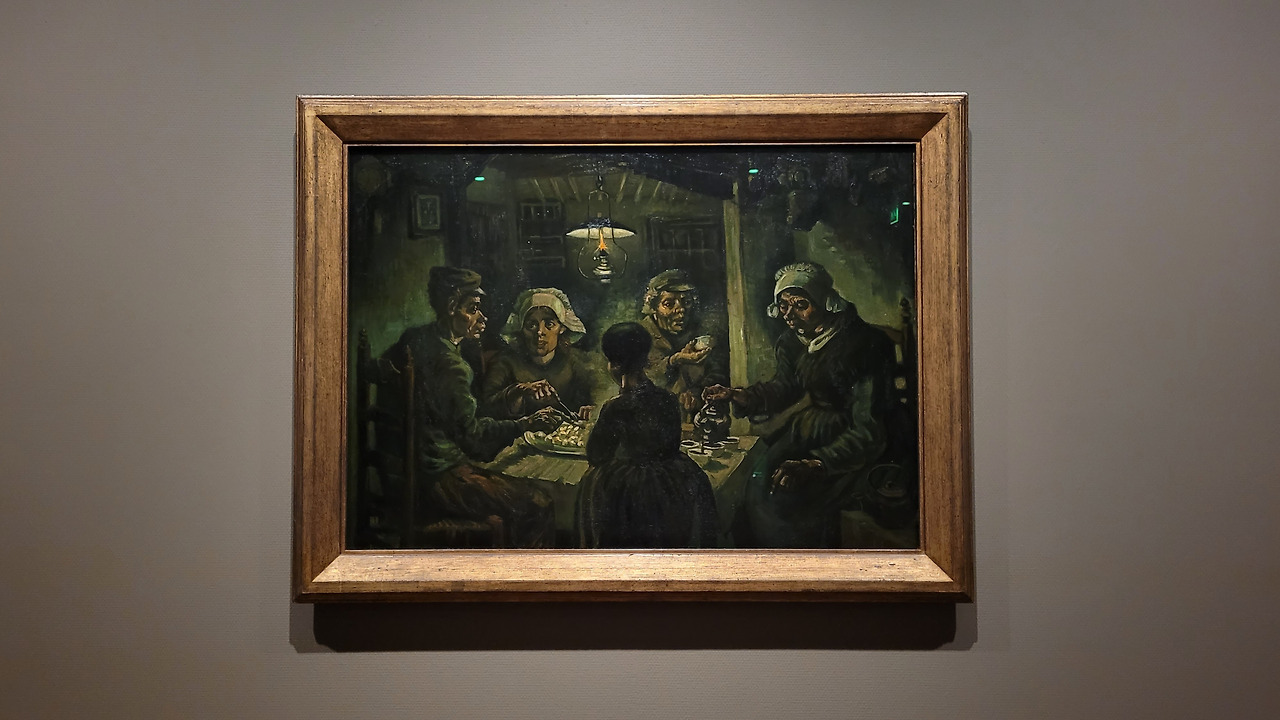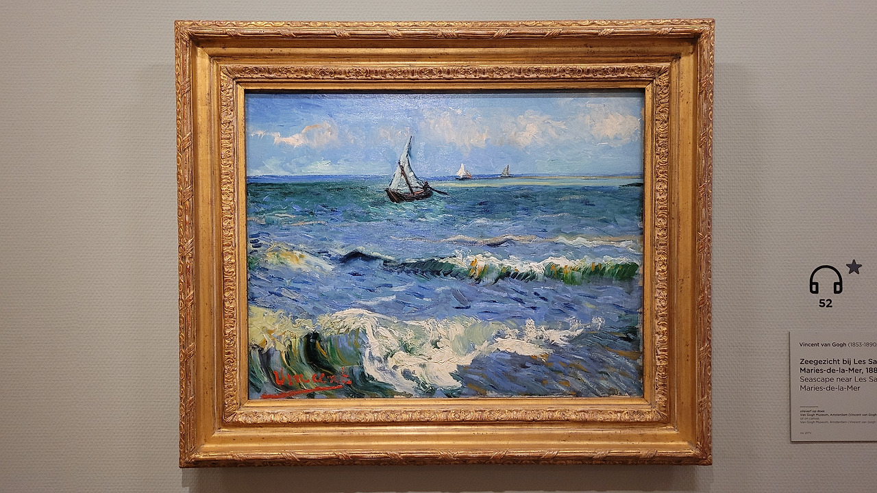첫 번째 목적지는 네덜란드가 낳은 또 하나의 위대한 화가 반 고흐 미술관이었다.인상파 미술의 대표자이면서 일생에서는 빈곤하게 살다가 사후 빛을 보게 된 인물로 알려진 빈센트 반 고흐의 작품들을 보러 전 세계에서 많은 이들이 아침부터 북적였다. 사물함에 짐을 넣고 가벼운 마음으로 관람을 시작했다. 처음에는 고흐의 작품만 있는 줄 알았는데 폴 고갱, 에밀 베르나르 등 동시대 살았던 예술가들의 작품도 있었다. 700여 점에 달하는 고흐의 유명한 유화, 드로잉 등이 전시되어 있는데 가장 유명한 것은 고흐의 방, 노란 집, 꽃피는 아몬드 나무, 아이리스, 감자 먹는 사람들 등으로 가다 서다를 반복하며 작품을 감상했다. 중간에 확대경으로 그림을 볼 수 있는 것도 있어서 그의 붓터치를 볼 수도 있었다.