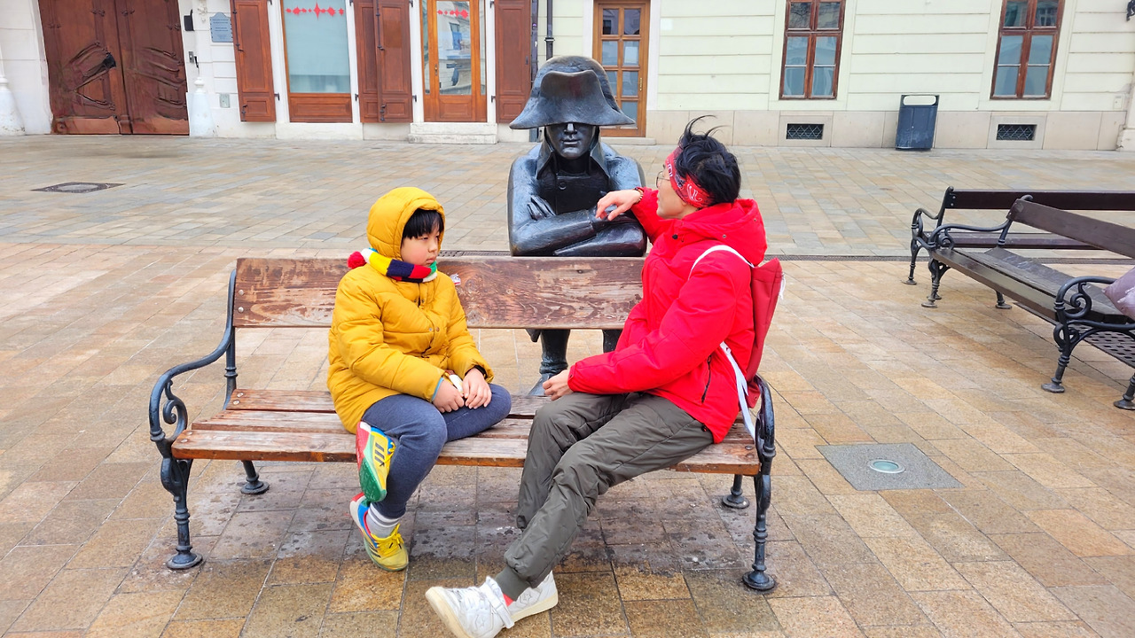 다음으로 유쾌한 숀 나치(Schöne Náci)가 등장해서 모자 사이로 얼굴을 넣으며 사진을 남겼다. 그는 이곳 거리에서 40년 가까이 지내며 늘 웃으며 사람을 돕던 실존 인물로서 브라티슬라바 사람들에게 사랑받던 캐릭터였다. 여타의 다른 동상과는 다르게 실제로 살았던 사람을 거리의 동상으로 만들었다. 그리고 나폴레옹의 군인(Napoleon Army Soldier)은 벤치 뒤에 있는 동상인데, 나폴레옹 시절의 군복을 입은 청동상이 걸쳐있는 의자였다. 별명은 엿듣는 사람이라더니 벤치에 앉아 있는 사람들의 대화를 듣는 듯했다.
