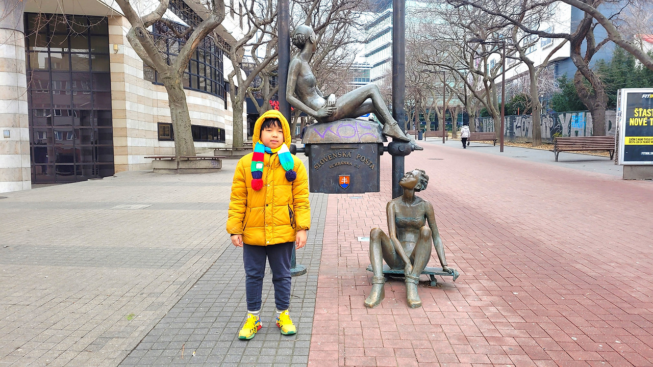 이 도시에는 이색적인 동상이 거리 곳곳에 많아서 우리는 걸어 다니며 그런 동상을 찾는 것도 소소한 재미였다. 가장 먼저 찾은 스케이터 소녀 우체통(Skater Gril's Mailbox)은 2017년에 설치되었으며, 브라티슬라바의 스케이터 소녀를 기념하기 위해 만들어졌다. 우체통은 스케이터 소녀의 모습을 형상화한 것으로, 우체통에 편지를 넣으면 스케이터 소녀에게 전달되었다.