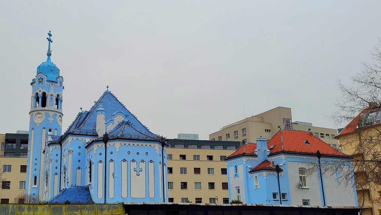 광장을 둘러보고 점심 식사를 하기 위해 근처 슬로바키아 식당을 찾았다. 나름 유명한 식당이어서 기대를 하고 주문했는데 유명한 마늘 수프는 나에겐 느끼하며 밍밍한 사골 맛이 났고, 추천받은 돼지고기 요리는 기름지고 맛이 끌리지 않아서 아쉬움이 있었다. 여행에서 처음으로 많이 남긴 점심을 먹고 나서 마지막 일정이라 할 수 있는 파란 성당을 찾아 나섰다. 브라티슬라바의 파란 성당(Farský kostol sv. Alžbety)은 1900년대 초 아르누보 양식으로 설계되었으며 연한 푸른색이 인상적인 교회로서, 성 엘리자벳 성당으로도 알려져 있다. 성 엘리자벳은 헝가리의 왕비이자 로마 가톨릭의 성인으로 유명했다. 내부와 외부 모두 화려한 장식이 특징인데, 내부는 아르누보 양식의 스테인드글라스와 조각으로 장식되어 있으며 외부는 연한 푸른색의 타일로 장식되어 있었다. 포근한 색감과 건축 느낌이어서 오랫동안 보고 싶은 색다른 성당이 있다.