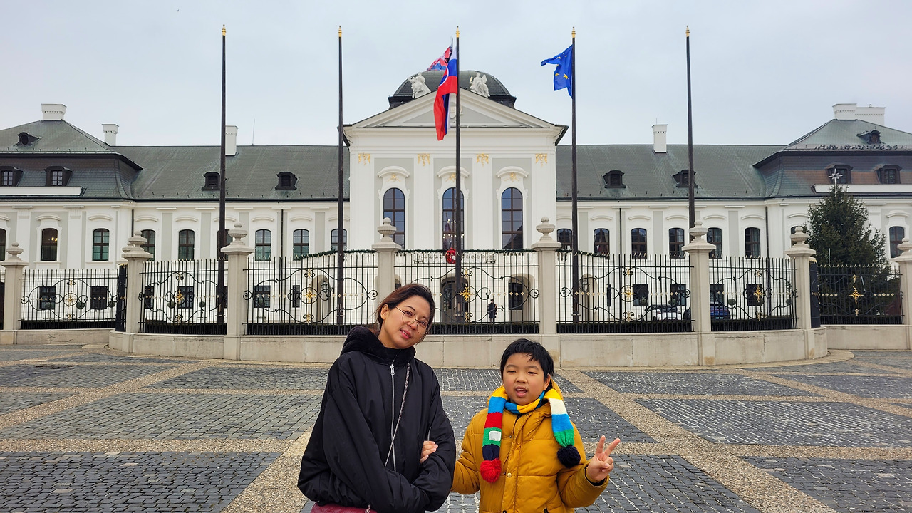 옛 공산주의 시절 분위기가 나는 거리를 걸어가니 보이는 그리살코비흐 궁전(Prezidentský palác)은 현재 슬로바키아 대통령의 관저로 사용되고 있는 곳이었다. 궁전은 1760년에 지어졌으며, 바로크 양식과 로코코 양식이 혼합된 건축 양식을 가지고 있다. 정원은 프랑스식 정원으로 조성되어 있으며, 아름다운 조각상과 분수가 있다. 18세기부터 오스트리아의 귀족 가문들이 소유하고 있었고, 오스트리아-헝가리 제국 붕괴 이후 1918년부터 1993년까지는 체코슬로바키아의 대통령 관저로 사용되었다. 그 사이 이 나라는 소련의 영향력 아래 사회주의 국가가 되었고, 벨벳 혁명 이후 민주화가 되었다가 1992년 12월 31일 슬로바키아와 체코가 분리된 이후에는 슬로바키아 대통령의 관저로 사용되고 있었다.