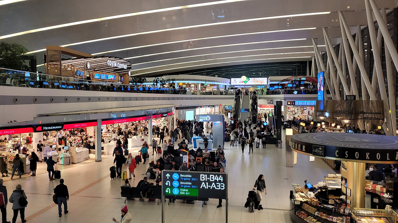 공항 갈 시간이 되어서 우리는 언드라시 거리를 걸어 호텔로 데려다줄 트램을 탔다. 페스트 지역에서 부다 지역까지 다뉴브강을 건너는 트램을 타고 이 도시와 안녕을 고했다. 느리게 흘러가는 강줄기처럼 천천히 여행의 시간이 가길 바랐는데 목적지에 도착한 트램처럼 우리도 여행의 끝에 도달해 있었다. 호텔에서 캐리어를 받아서 미리 예약해 둔 택시를 타고 부다페스트 페렌츠 리스트 국제공항으로 갔다. 생각보다 큰 공항은 아니어서 구경할 것은 많이 없었지만 곧 비행기 타는 우리로서는 이마저도 즐거웠다.