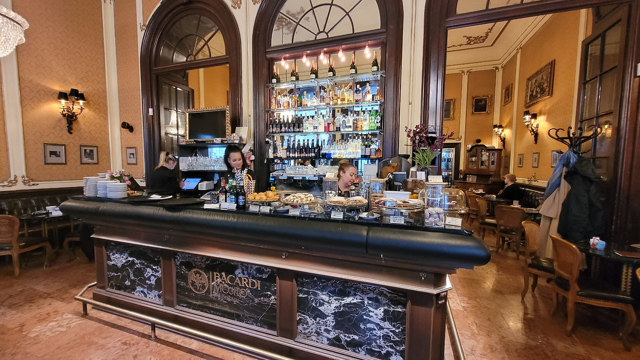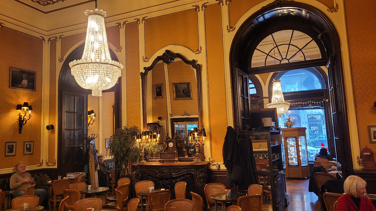 뮈베스 카베하즈(Művész Kávéház)는 예술가 카페로서 1898년 11월 11일에 개관했으며, 100년이 넘는 역사를 가지고 있었다. 건축가 리하르트 루트비히가 설계했으며, 화려한 네오바로크 양식의 건축물이 특징으로 1층은 커피와 차, 디저트 등을 판매하고, 2층은 예술가들의 전시장으로 사용되고 있다. 헝가리 예술가들의 모임 장소로 유명했으며, 20세기 초반 헝가리 문화 발전에 중요한 역할을 했던 곳이었다.우리는 코르타도, 레모네이드, 딸기 스무디와 홈메이드 밀푀유를 주문해 이번 여행의 마지막 여유를 즐겼다.