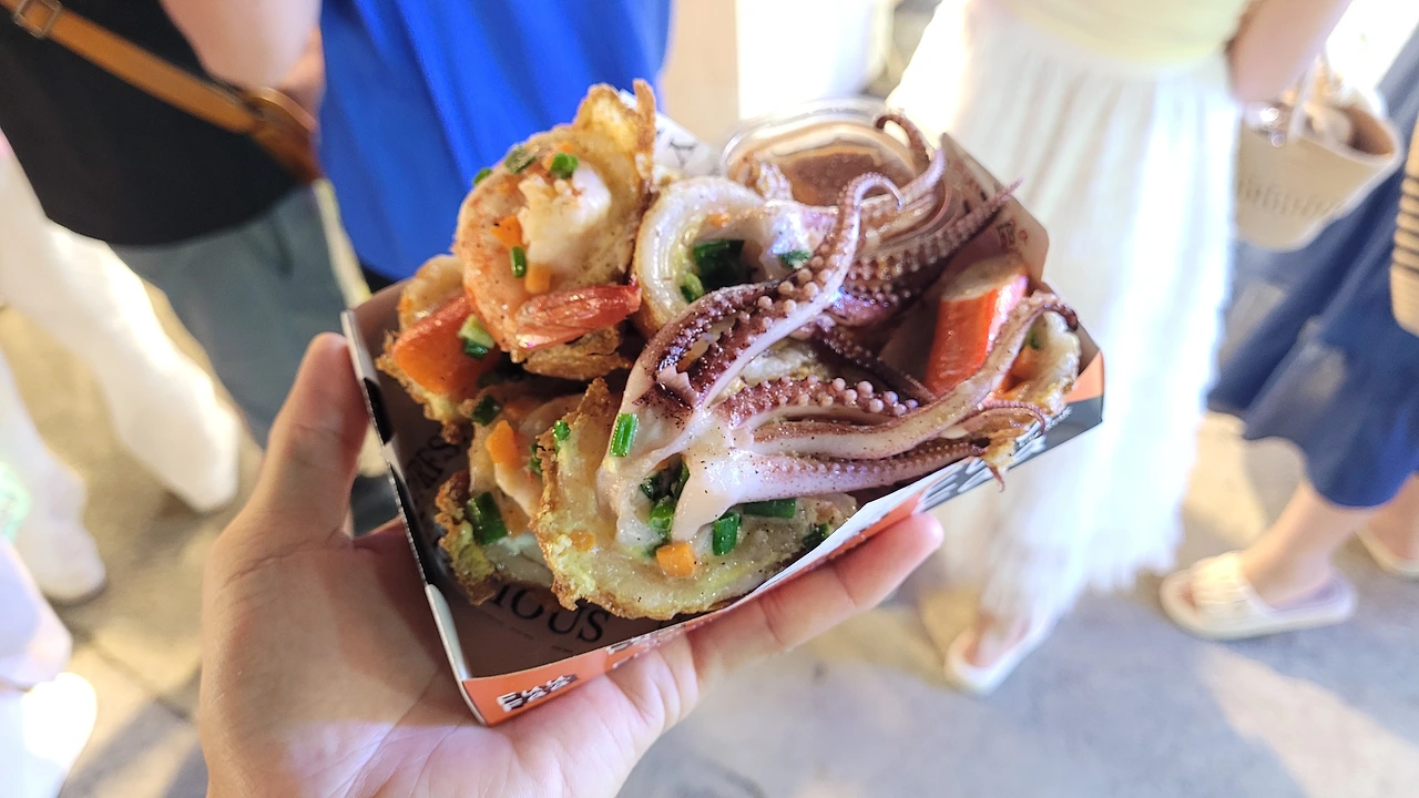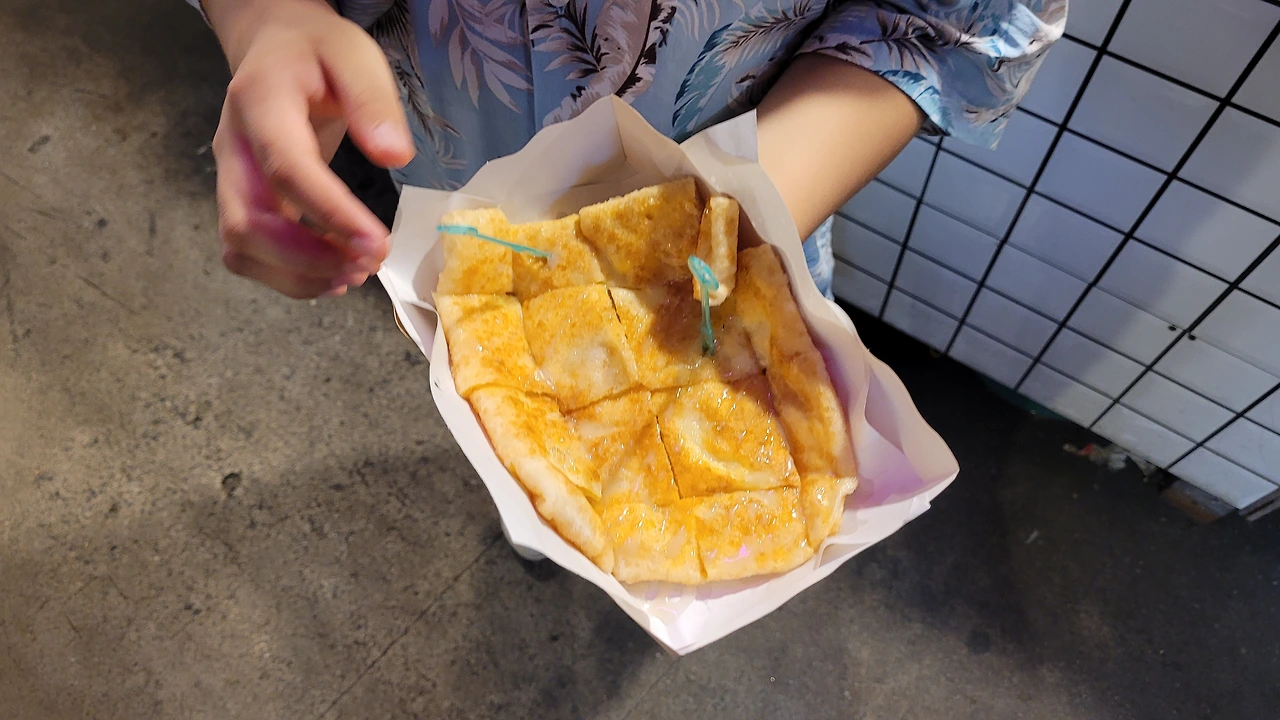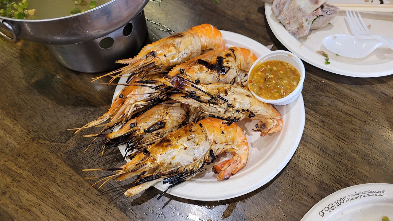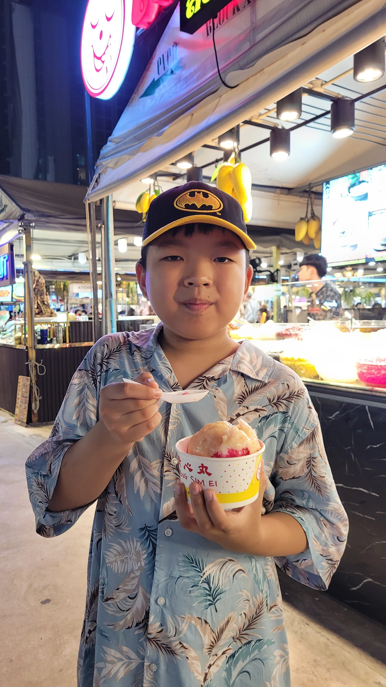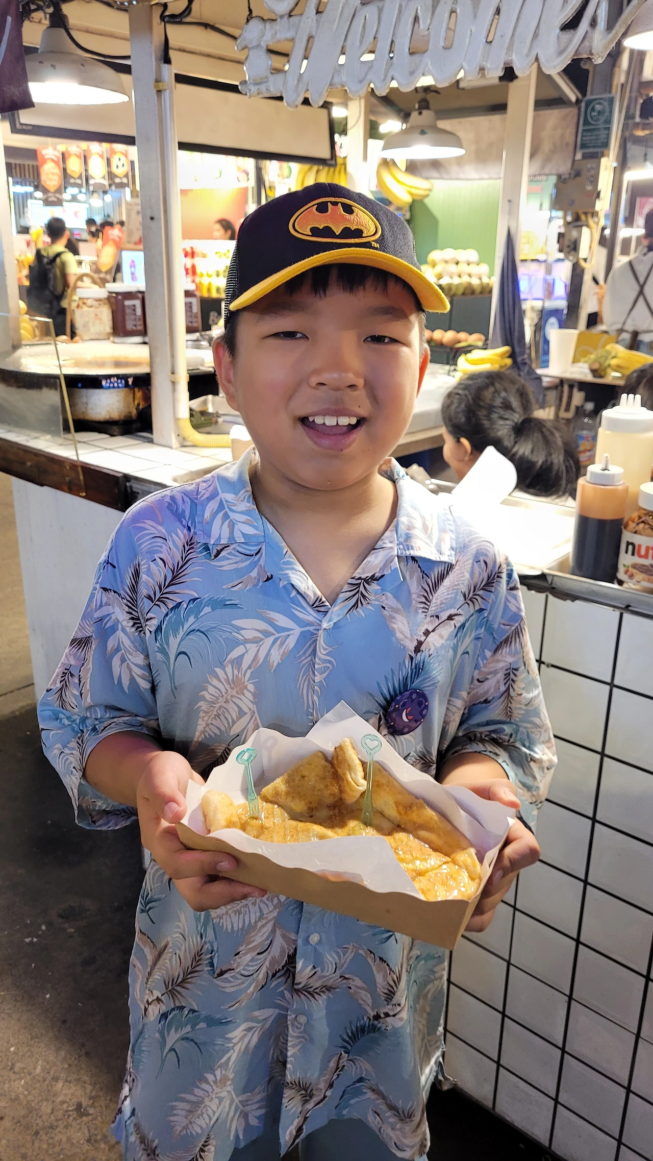 거리에 질려갈 때쯤 드디어 야시장이 눈앞에 보였다. 방콕에는 유명한 야시장이 많은데 우리가 방문한 곳은 젊은이들에게 인기 있다는 쩟페어 야시장(Jodd Fairs)에 왔다. 이곳에서 목표는 매운 등뼈찜인 렝쌥(Leng Zabb)과 커리 소스로 볶은 게 요리인 푸팟퐁커리(Poo Pad Pong Kari), 새우구이를 먹는 것이었는데 목표달성을 하기에 선택하기 어려울 정도로 식당이 많았다. 몇 군데를 보고 들어간 식당에서 요리들을 시키고, 아내는 병맥주를 주문해 제대로 즐겼다. 렝쌥은 푹 삶은 돼지 등뼈가 고추의 알싸함과 고수의 풋풋함에 어우러져 처음 먹지만 입맛에 맞았다. 맵지 않을까 염려했는데 오히려 아이가 특히 좋아했다. 식사를 마치고 나와 구경하면서 하나씩 골라 사 먹는 재미가 있었다. 로띠(Roti)는 얇게 펴서 튀긴 밀가루 부침으로 연유를 뿌려 달짝지근하며 고소한 맛을 자랑했고, 타코야키 스타일에 해물을 넣은 것도 아는 맛 그대로 맛있었다. 아이는 태국식 얼음 빙수인 남깽사이(Nam Kang Sai)를 사서 마지막을 완벽하게 끝냈다.